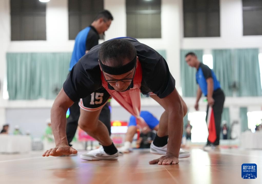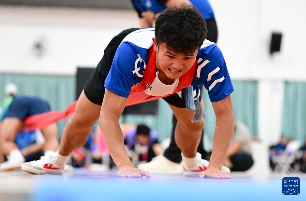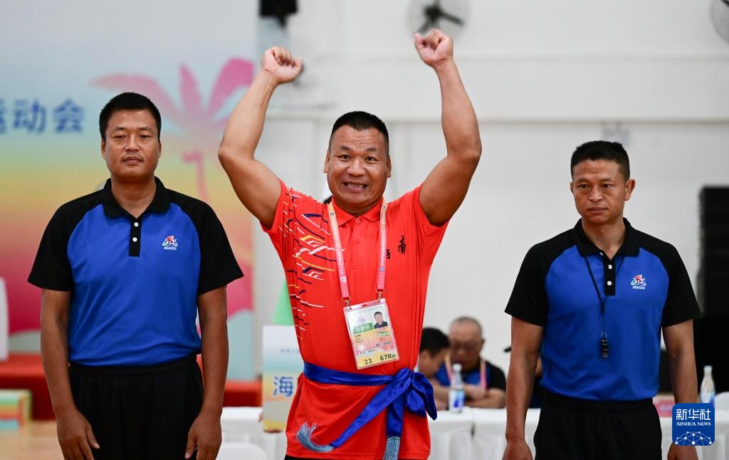 當日,第十二屆全國少數(shù)民族傳統(tǒng)體育運動會押加項目55、61、68、76、85公斤級五個組別的半決賽在海南省三亞市舉行。