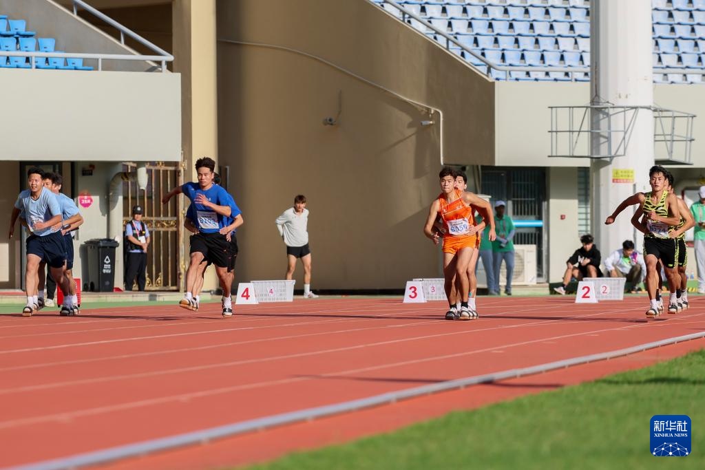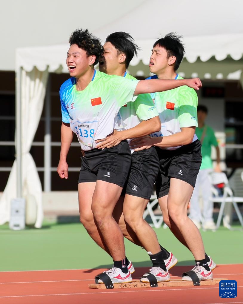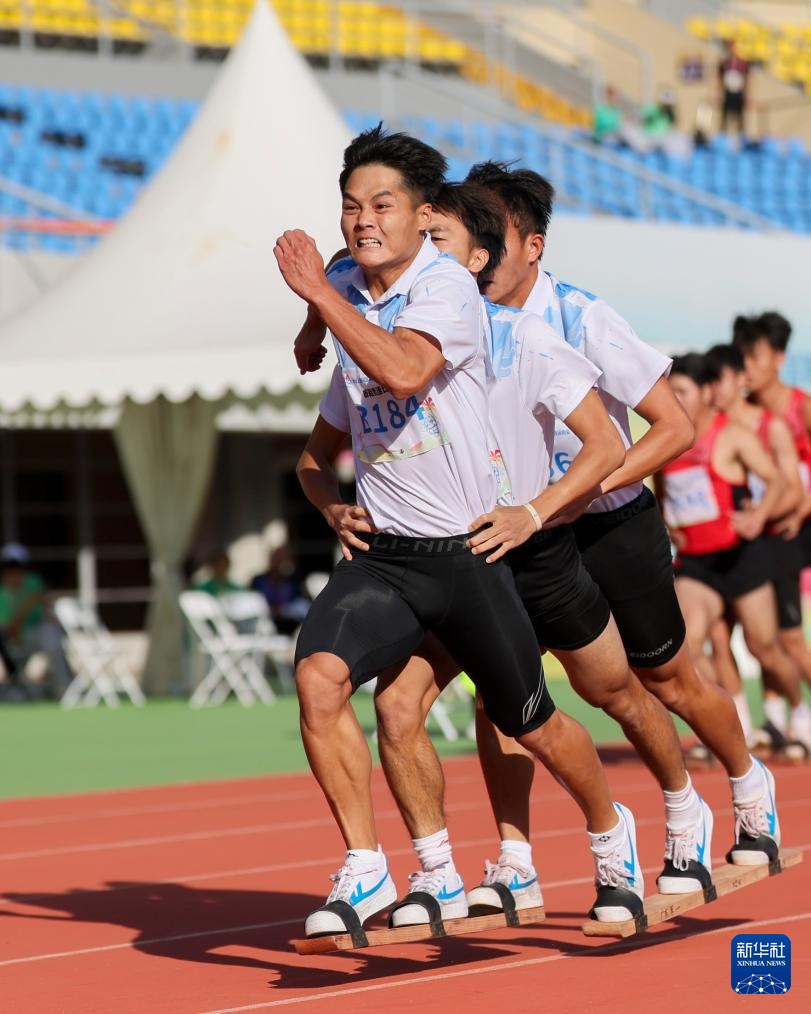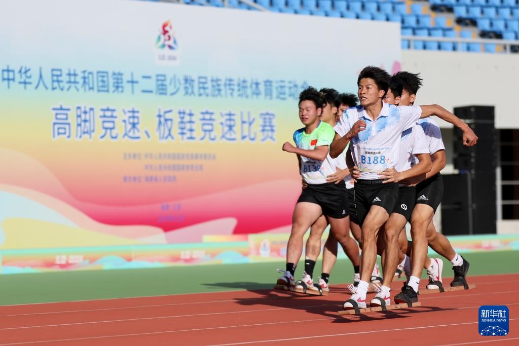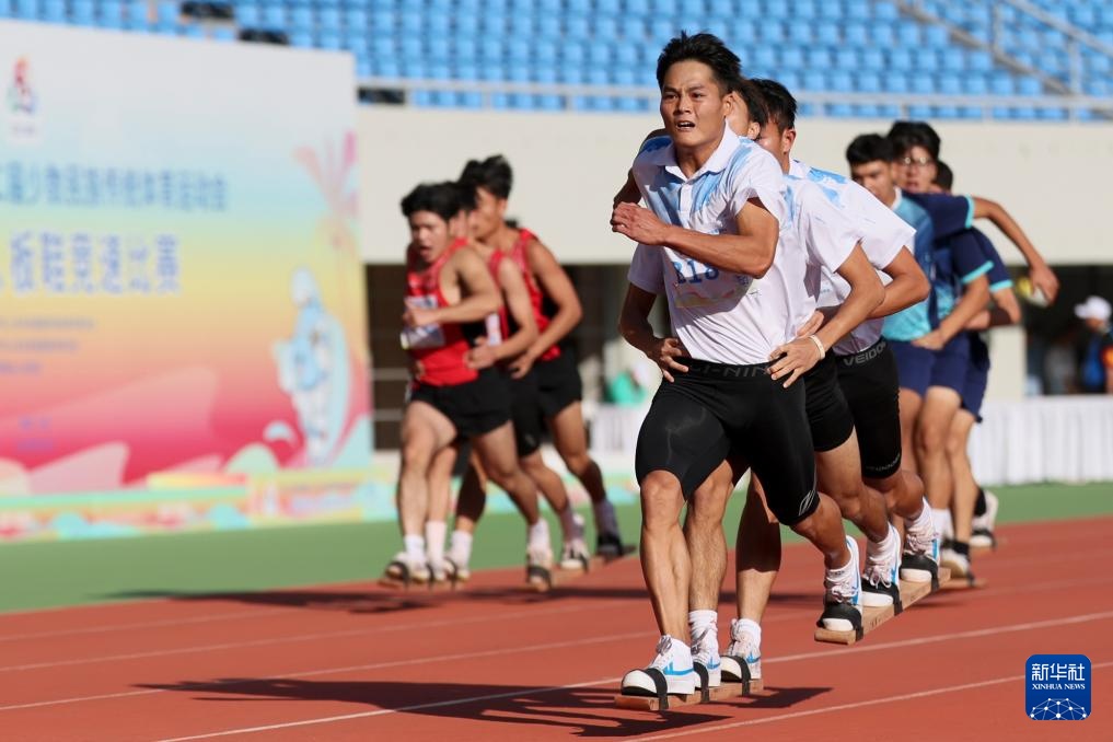 當日,第十二屆全國少數民族傳統體育運動會板鞋競速男子100米次賽在海南三亞舉行。
