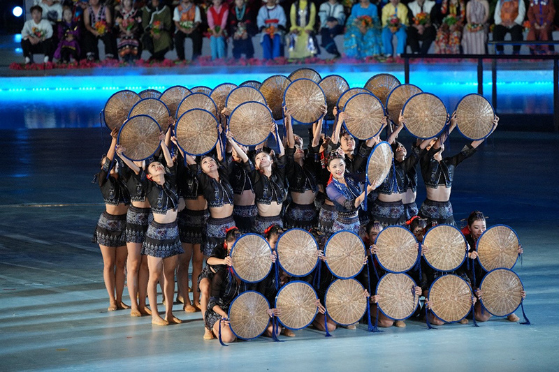 作為第十二屆全國少數民族傳統體育運動的重要組成部分,民族大聯歡活動圍繞“民族大聯歡·天涯共此時”主題分為歡迎儀式、游園部分、聯歡環節三個部分。精彩紛呈的節目、豐富多彩的活動、風情濃郁的展示、獨具魅力的習俗,凝聚天南地北各民族團結情誼。