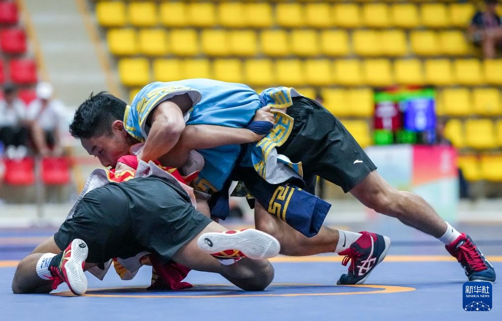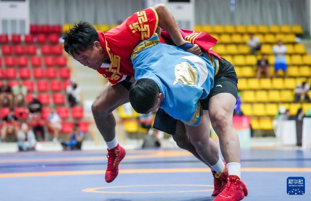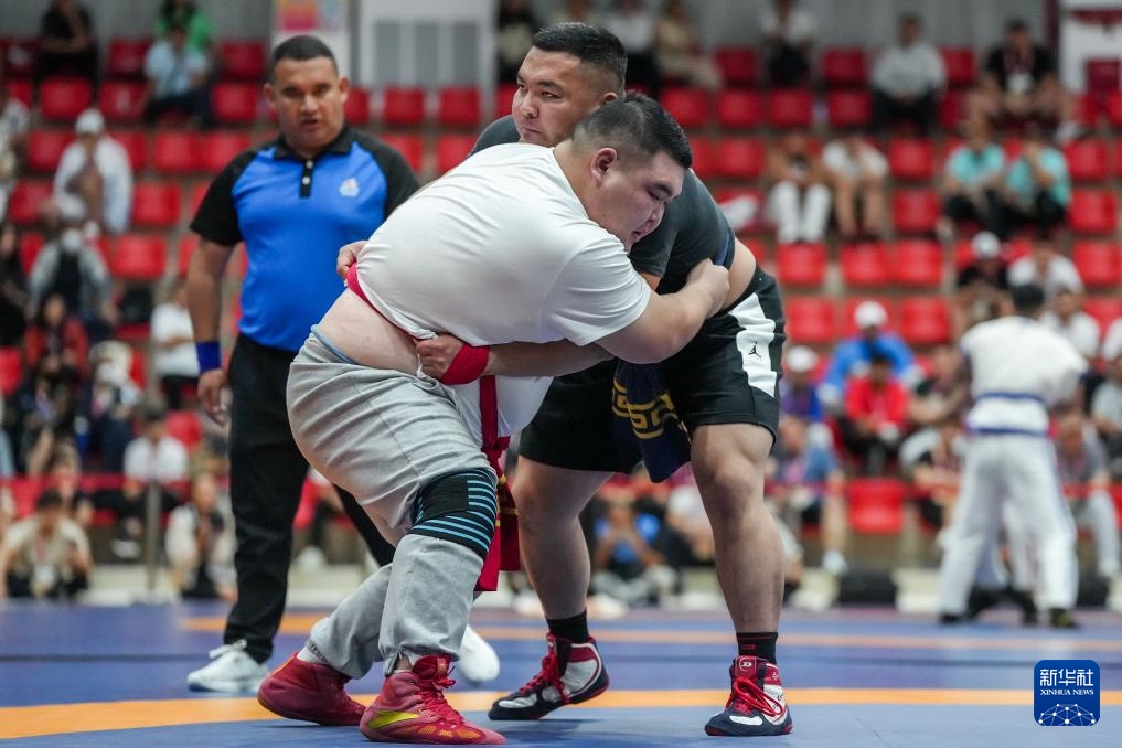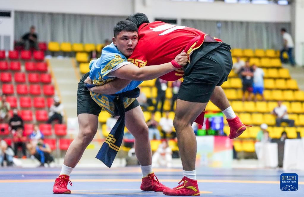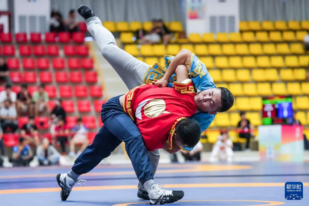 當(dāng)日,第十二屆全國(guó)少數(shù)民族傳統(tǒng)體育運(yùn)動(dòng)會(huì)民族式摔跤北嘎(藏族式摔跤)決賽在海南省三亞市舉行。