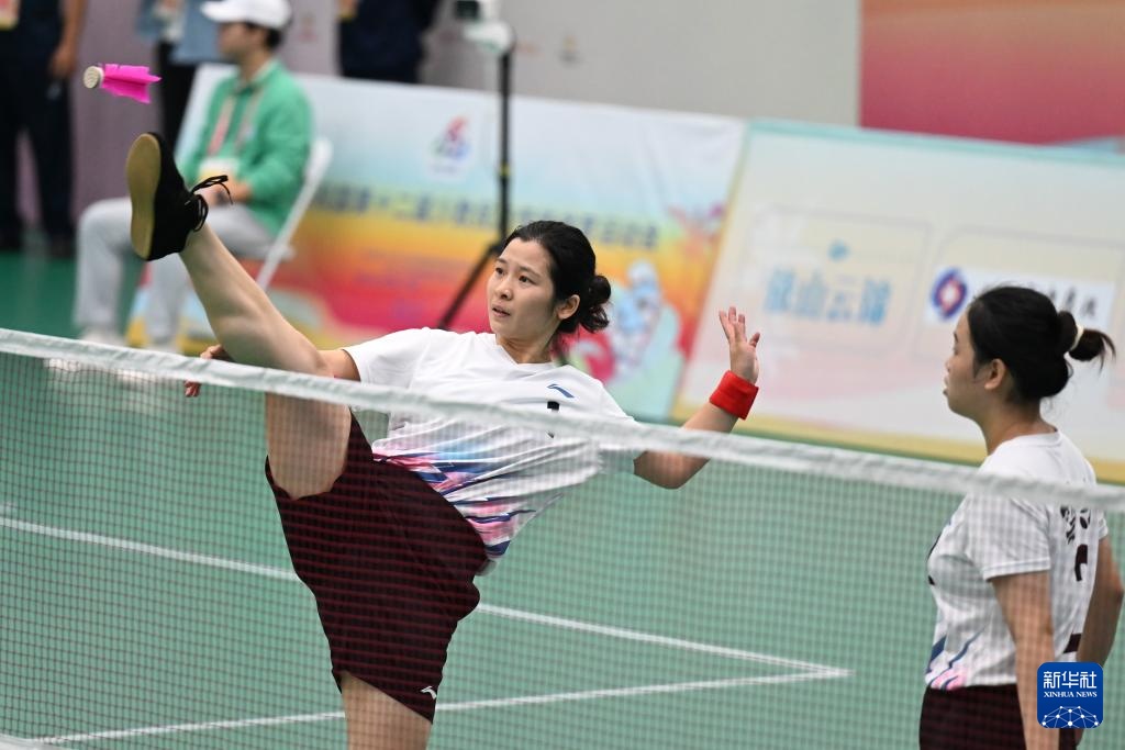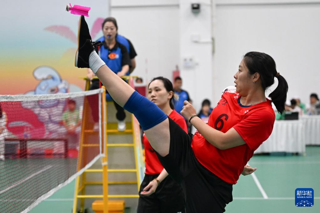 當(dāng)日,第十二屆全國少數(shù)民族傳統(tǒng)體育運(yùn)動會毽球女子雙人賽第三輪比賽在海南三亞舉行。