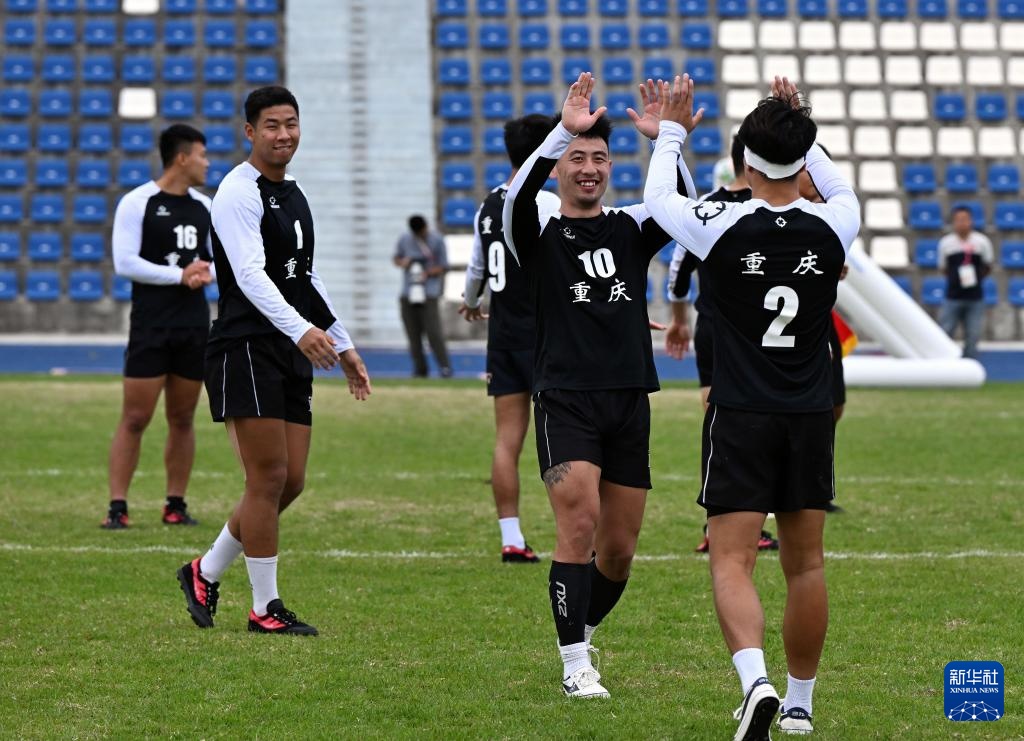 11月27日,重慶隊選手比賽后慶祝勝利。