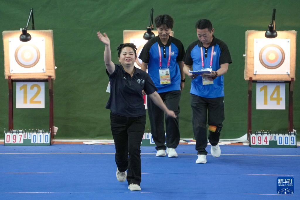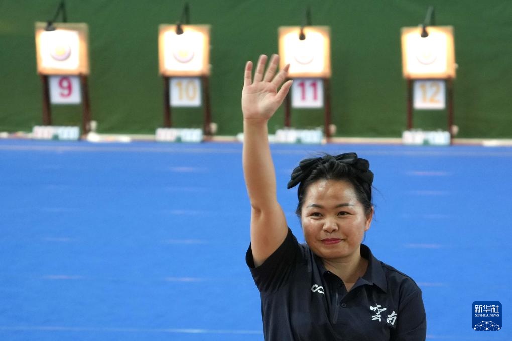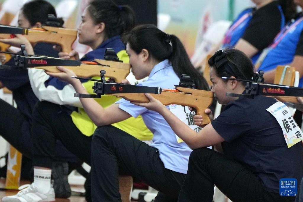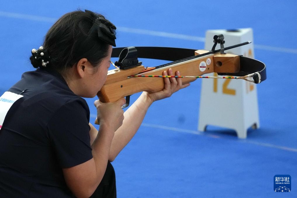 當日,第十二屆全國少數民族傳統體育運動會射弩項目標準弩女子跪姿決賽在海南三亞舉行。