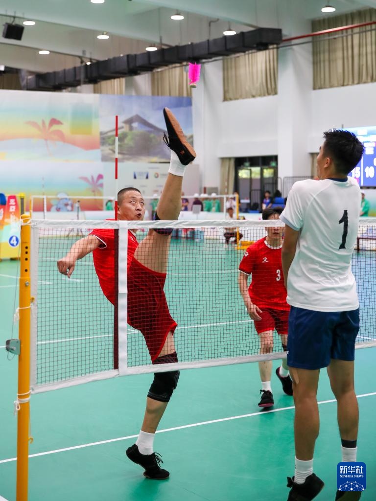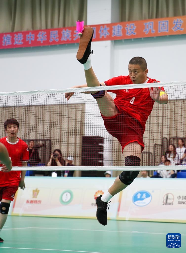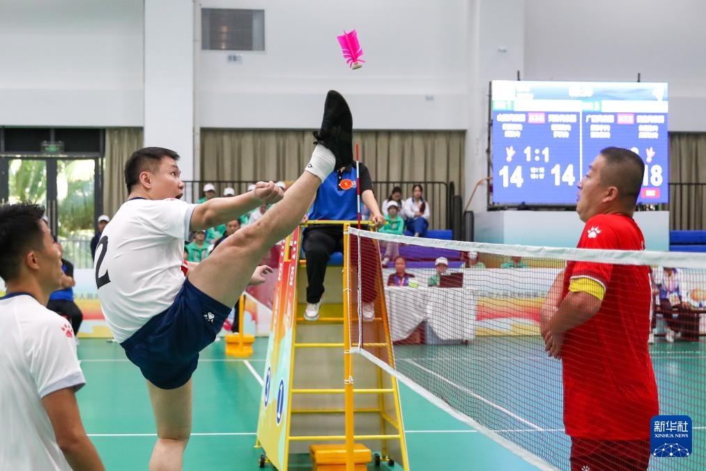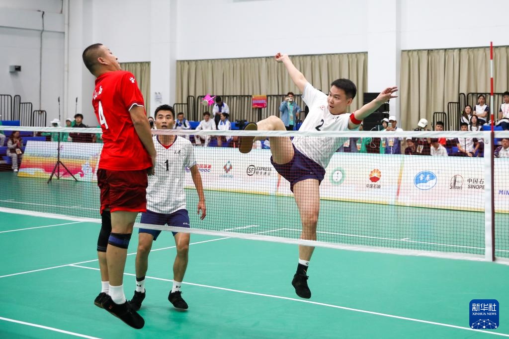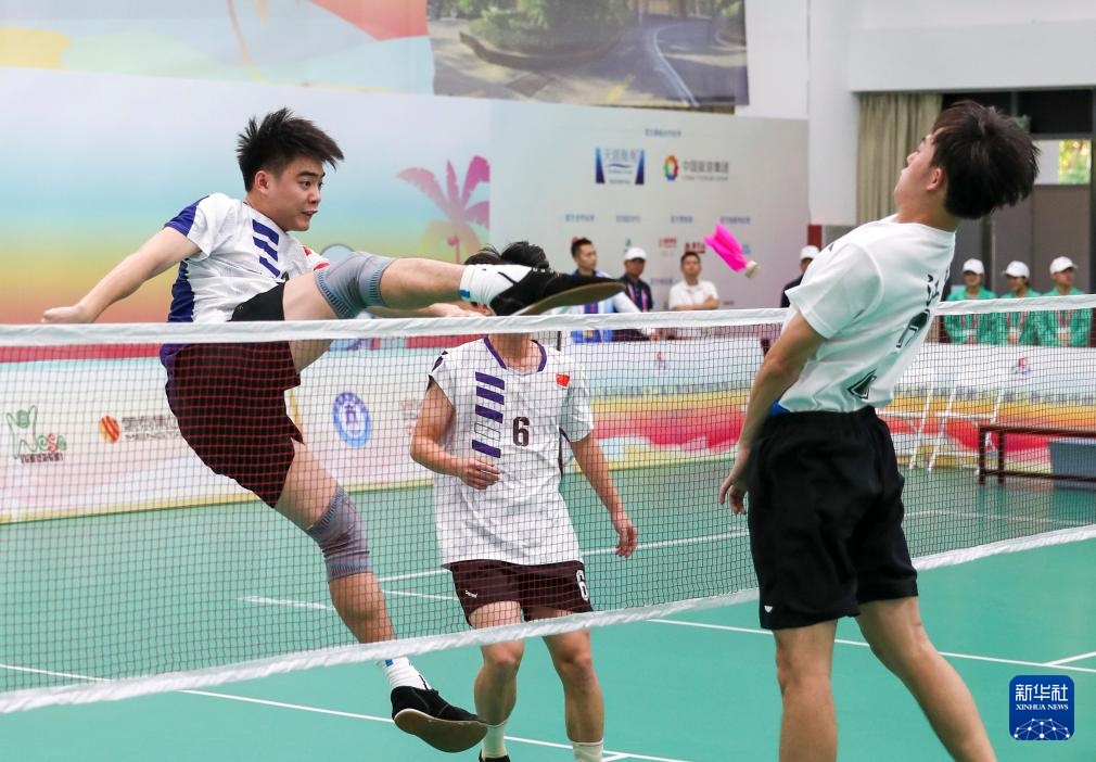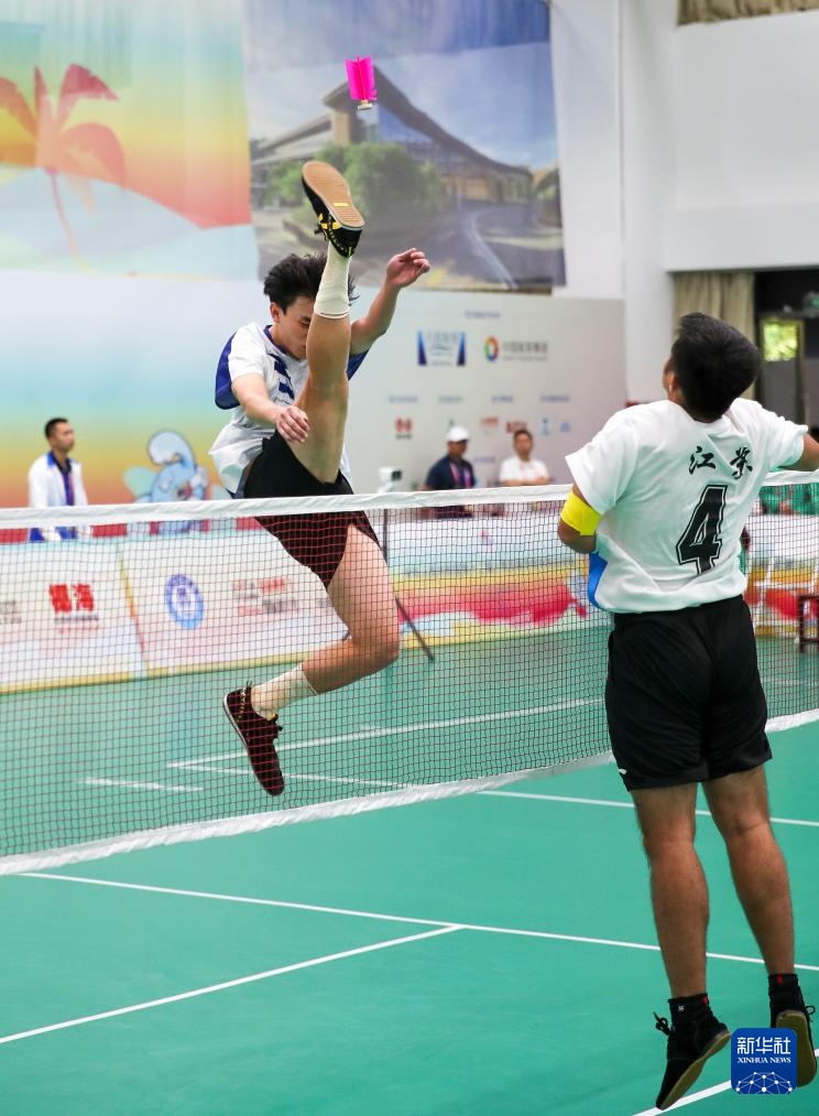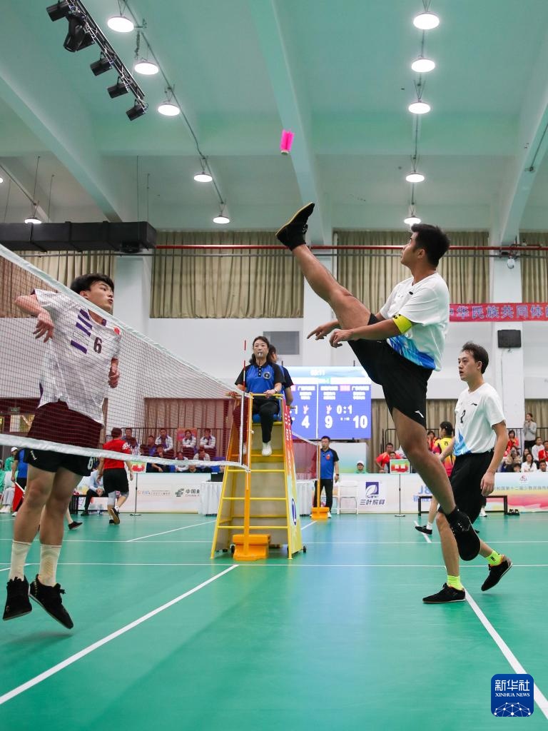 當日,第十二屆全國少數民族傳統體育運動會毽球項目男子雙人賽半決賽在海南三亞中瑞酒店管理學院舉行。