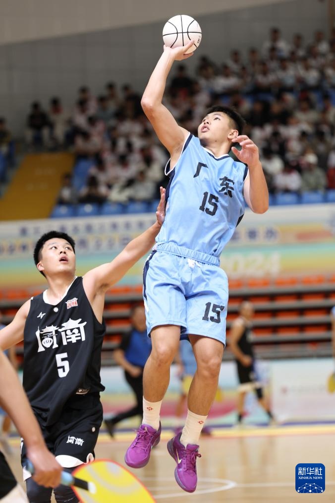 11月28日,廣東隊(duì)球員陳藝?。ㄓ遥┰诒荣愔型肚?。最終,廣東隊(duì)37比26戰(zhàn)勝河南隊(duì)。