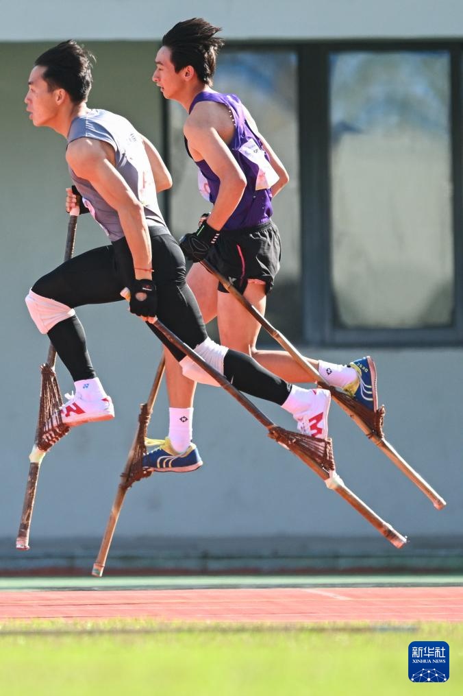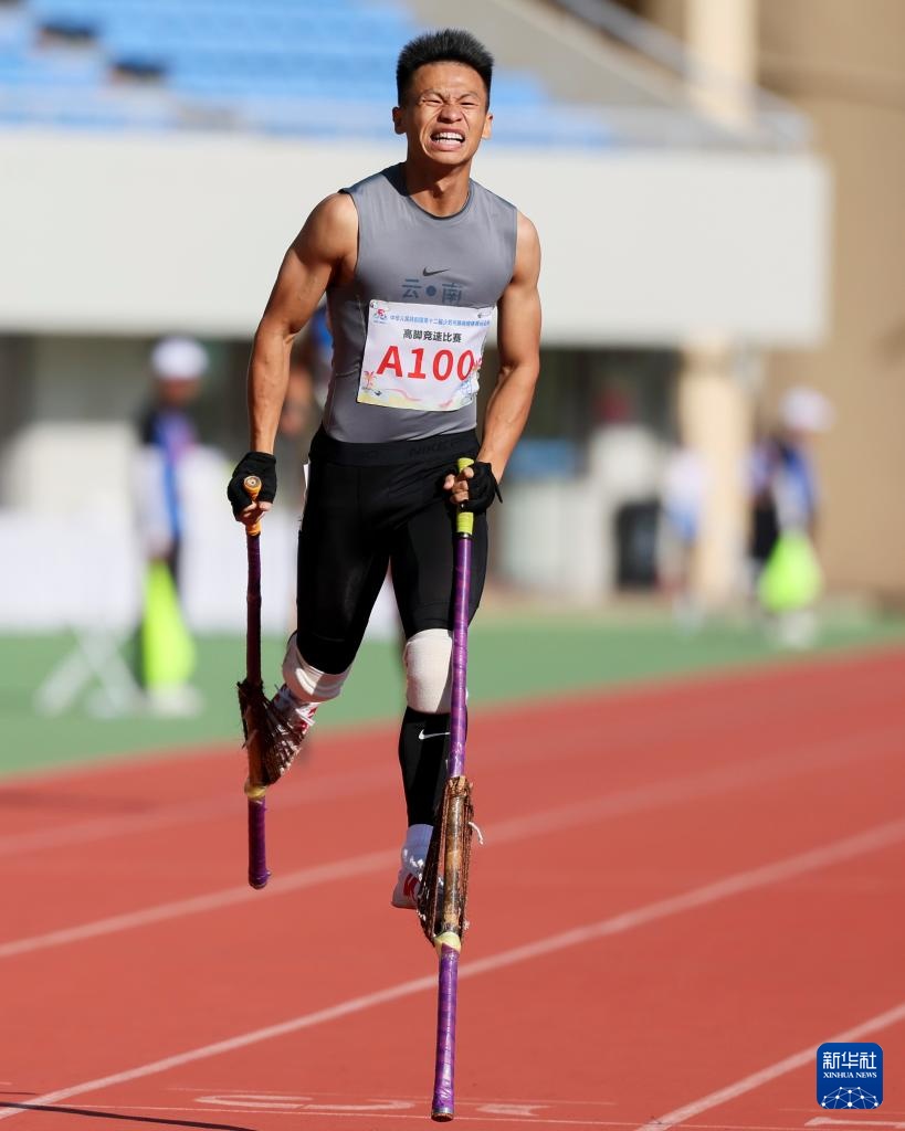 當(dāng)日,第十二屆全國少數(shù)民族傳統(tǒng)體育運(yùn)動(dòng)會(huì)高腳競速男子400米決賽在海南省三亞市舉行。