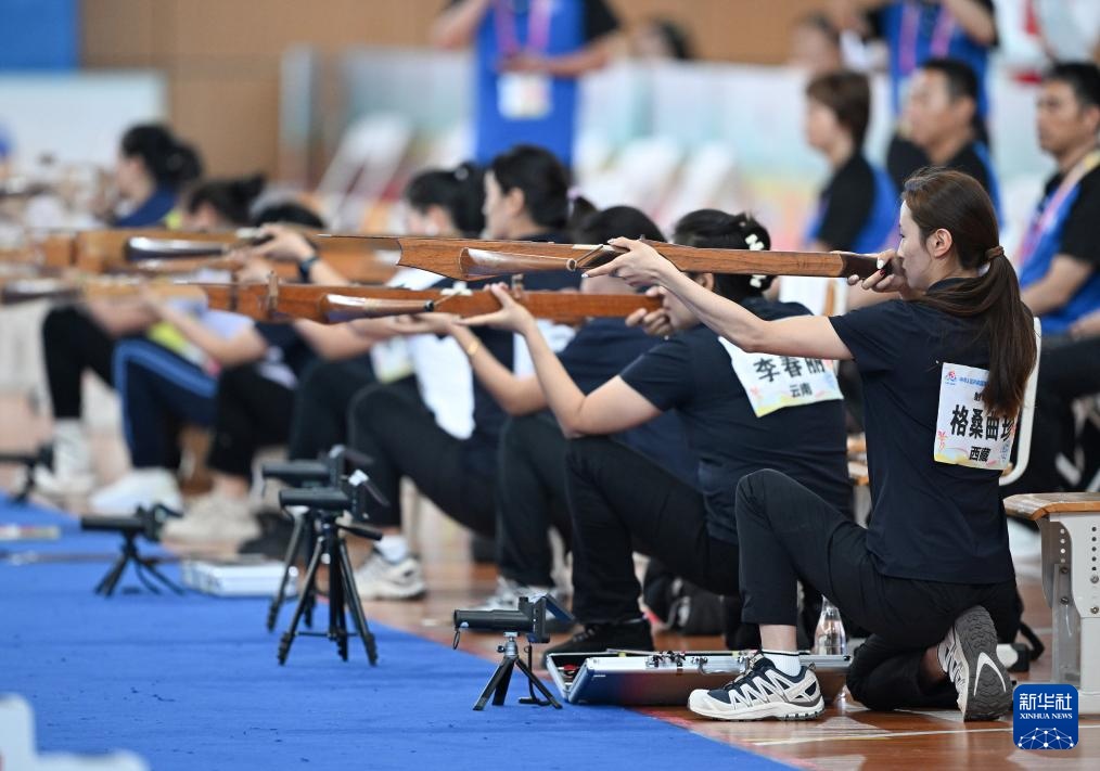 當日,第十二屆全國少數(shù)民族傳統(tǒng)體育運動會射弩項目民族傳統(tǒng)弩女子個人跪姿決賽在海南省三亞市舉行。