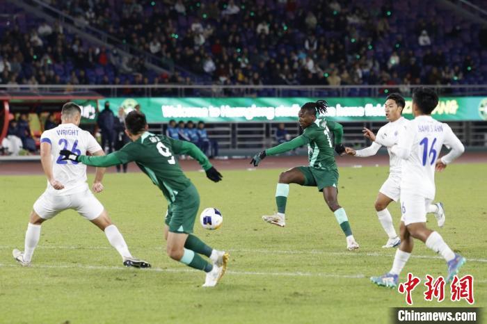 11月28日晚,2024-2025賽季亞冠二級聯賽小組賽F組第5輪,浙江隊在浙江杭州4比2戰勝新加坡獅城水手隊。圖為浙江隊球員埃弗拉(右三)帶球突破。 肖健 攝