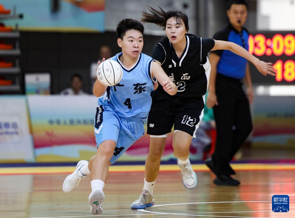 11月28日,廣西隊球員李幗君(右)在比賽中突破。