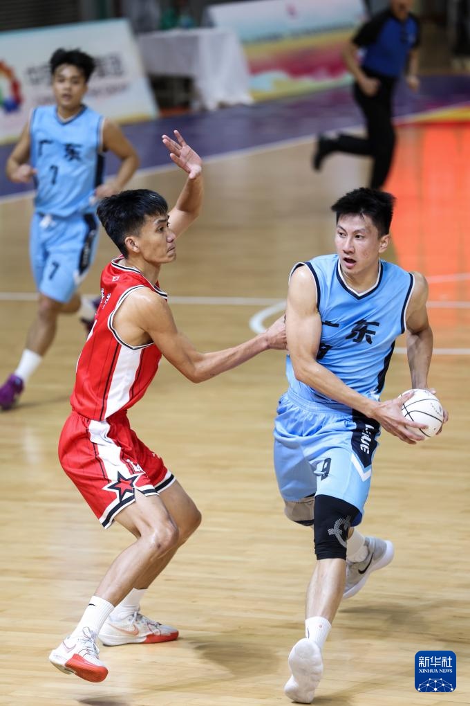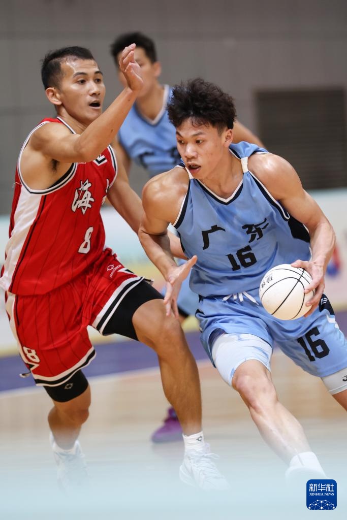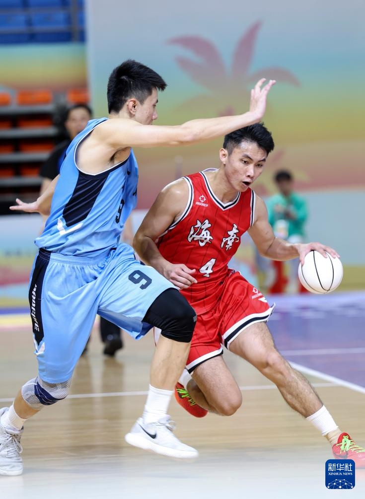 11月28日,海南隊球員黎經鑫(右)在比賽中進攻。