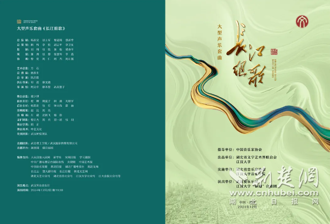 荊楚網(wǎng)(湖北日報網(wǎng))訊(通訊員王旭、張磐)12月2日19時30分,大型聲樂套曲《長江組歌》將在武漢琴臺音樂廳震撼首演。
