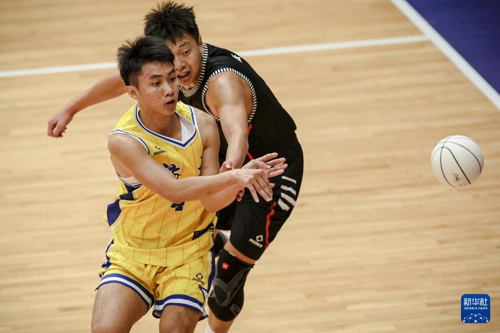 11月29日,海南隊球員黎經鑫(前)在比賽中傳球。