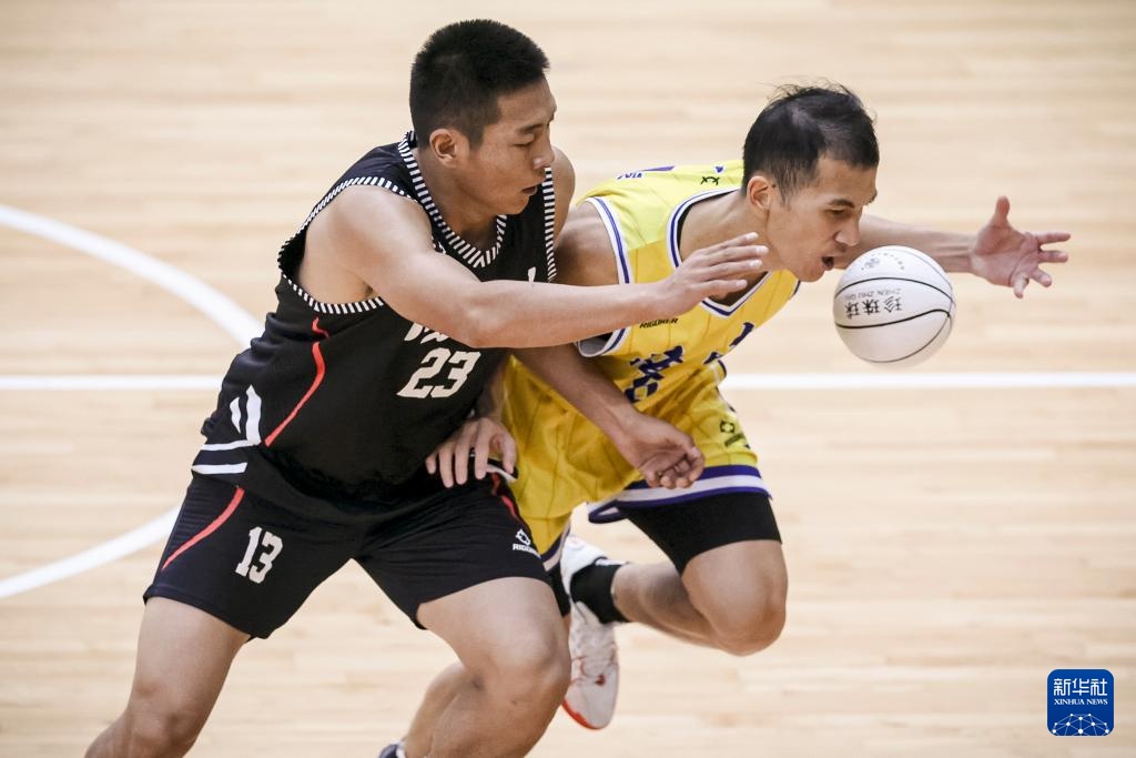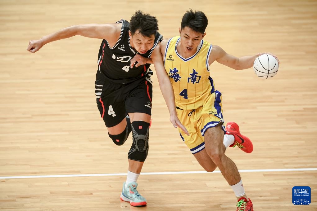 11月29日,海南隊球員黎經鑫(右)在比賽中進攻。