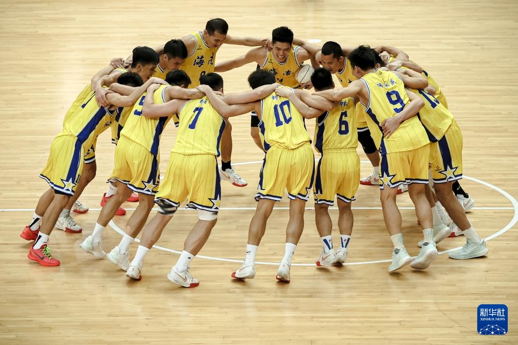 11月29日,海南隊球員在賽后慶祝勝利。