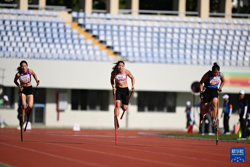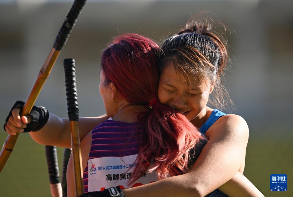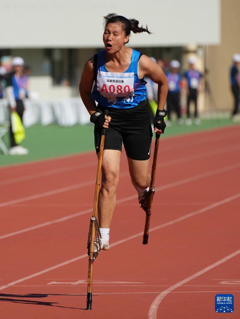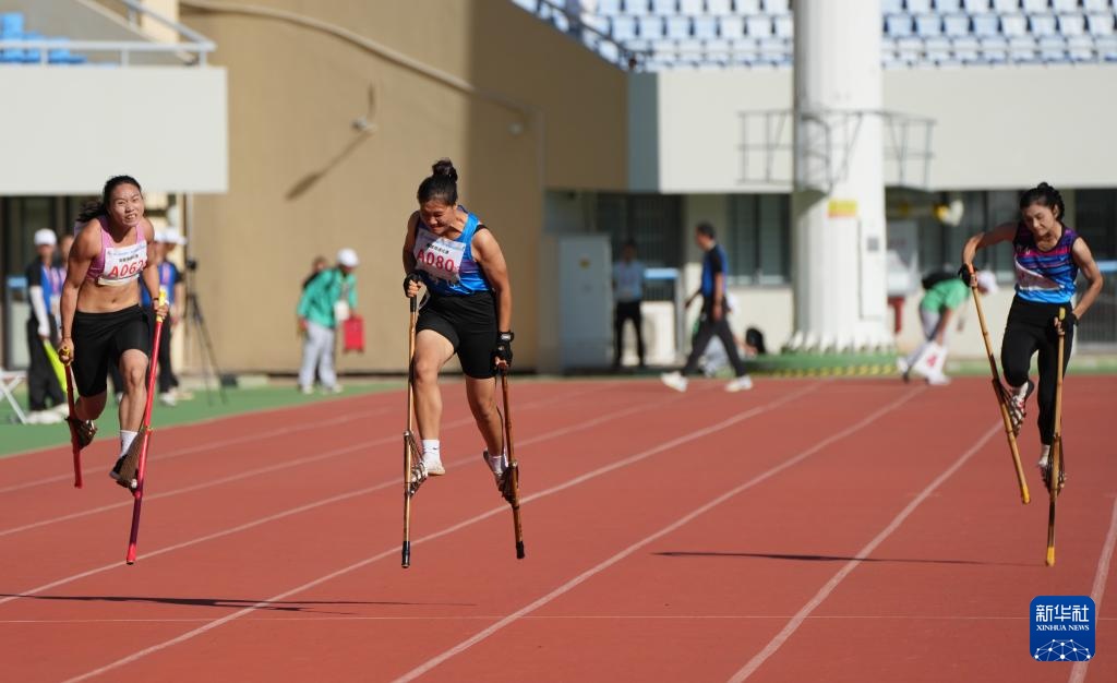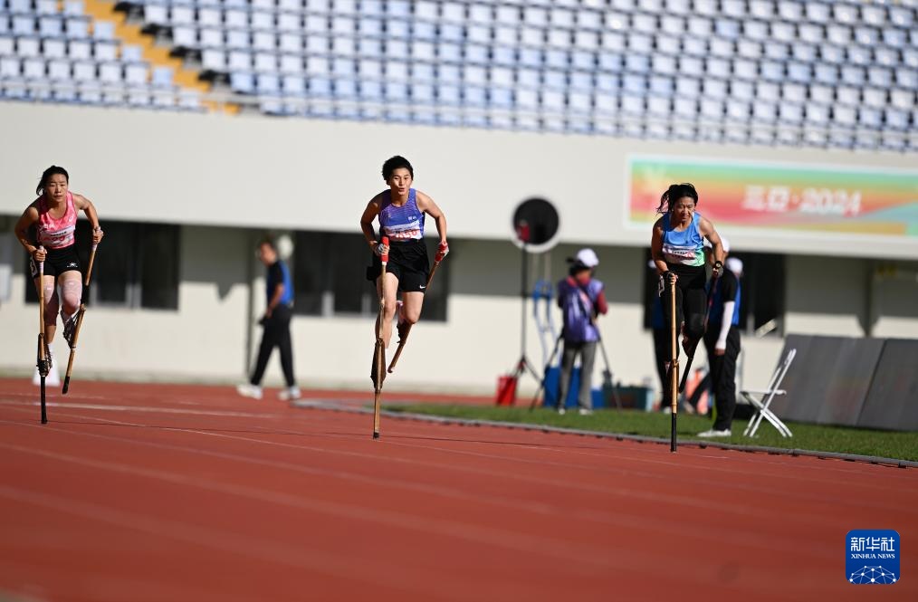 當日,第十二屆全國少數民族傳統體育運動會高腳競速女子100米決賽在海南省三亞市舉行。