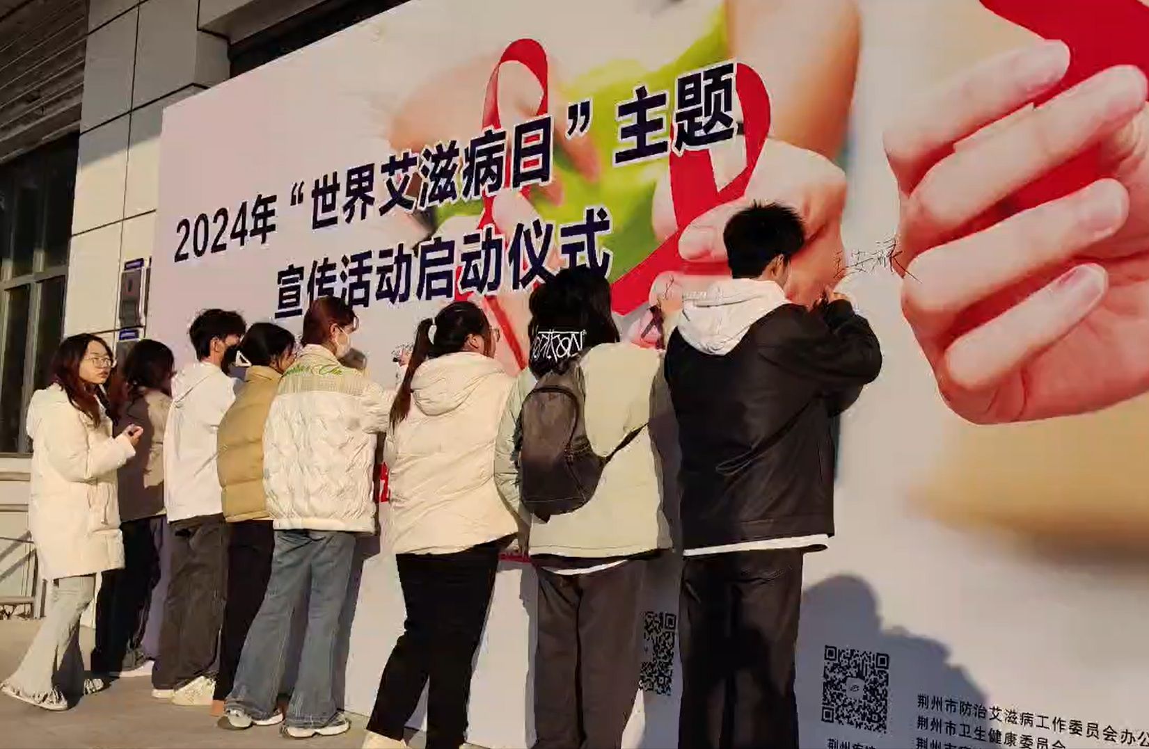 活動現場,來自荊州市各高校的學生在倡議墻上簽下了自己的名字,荊州市疾控中心設置了防艾知識科普展板。啟動儀式上,荊州市委宣傳部三級調研員楊士平宣讀了荊州市第四屆高校防艾宣傳短視頻征集評選結果的通知。