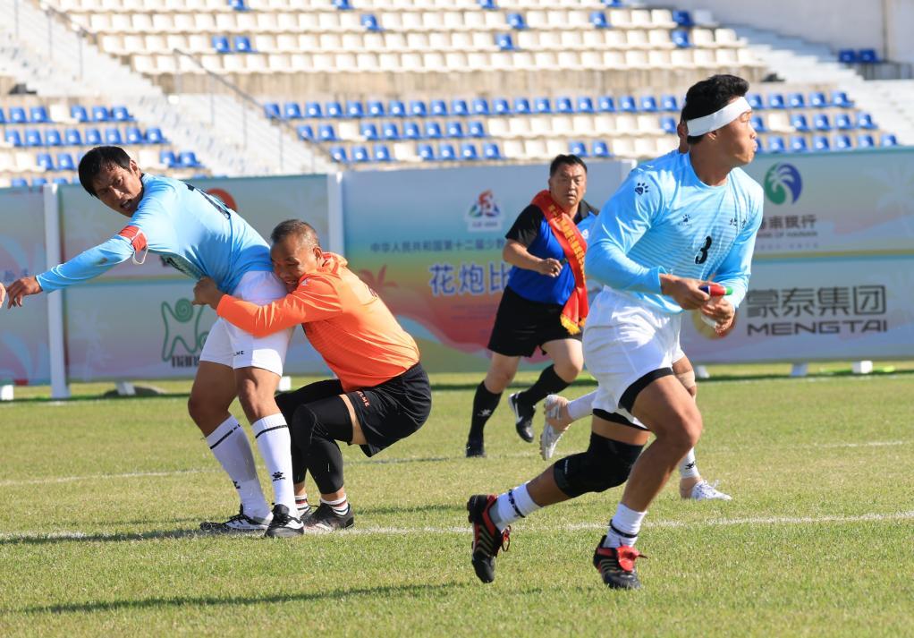 這是一場(chǎng)傳承的對(duì)決。賀忠亮曾是一名橄欖球運(yùn)動(dòng)員,在2013年全運(yùn)會(huì)上奪冠,之后退役。“從我退役到現(xiàn)在十年了,我想這次為這十年畫(huà)上圓滿句號(hào),然后徹底告別競(jìng)技場(chǎng)。”他的另一個(gè)身份是中國(guó)農(nóng)業(yè)大學(xué)體育教研部的老師。此次參賽,他既是隊(duì)里的運(yùn)動(dòng)員,也是不少隊(duì)員的教練。熱愛(ài)體育的他說(shuō):“即使離開(kāi)賽場(chǎng),也不會(huì)放棄橄欖球、放棄花炮。”