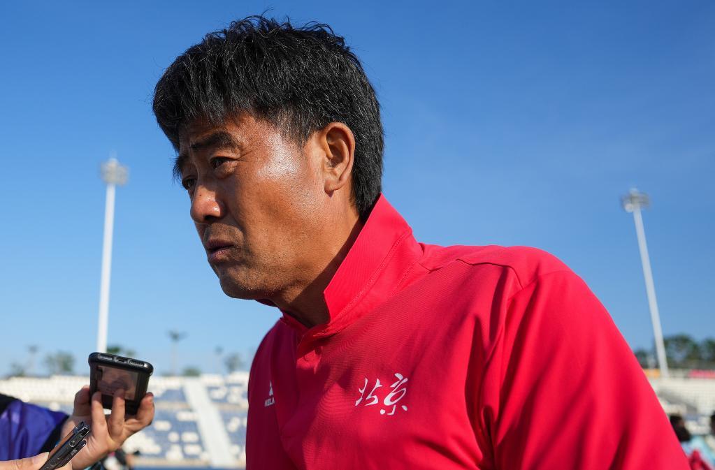 11月29日,北京隊(duì)教練張炳剛在比賽后接受采訪。新華社發(fā)(杜笑微 攝)