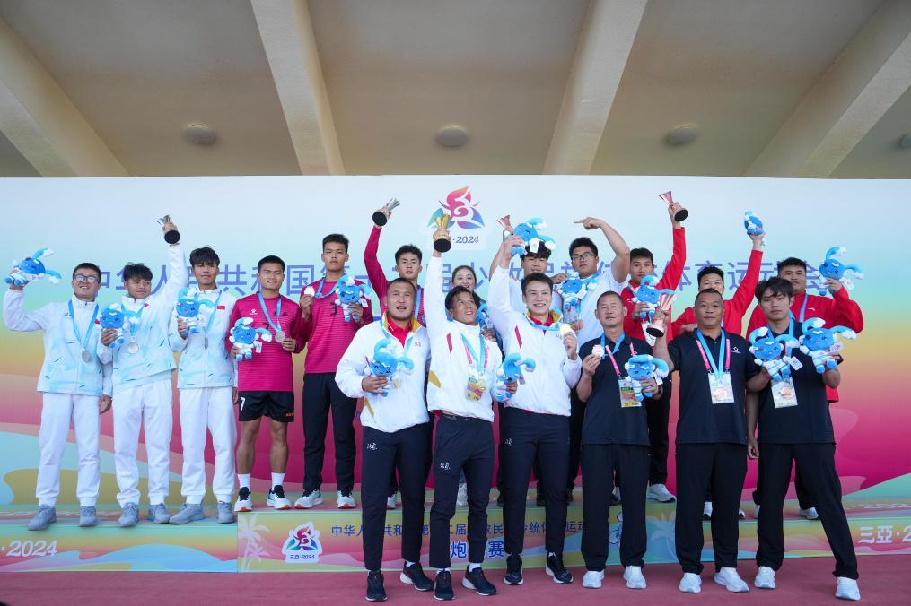 11月29日,北京隊(duì)成員在比賽后慶祝。當(dāng)日,在第十二屆全國(guó)少數(shù)民族傳統(tǒng)體育運(yùn)動(dòng)會(huì)花炮決賽中,北京隊(duì)?wèi)?zhàn)勝?gòu)V西隊(duì),獲得一等獎(jiǎng)。新華社發(fā)(杜笑微 攝)