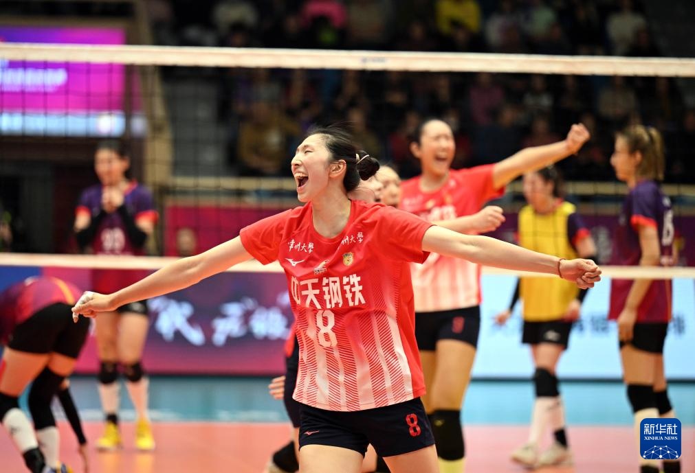 當日,在2024-2025賽季中國女子排球超級聯賽常規賽A組第十輪比賽中,天津渤海銀行隊主場3比1戰勝江蘇中天鋼鐵隊。