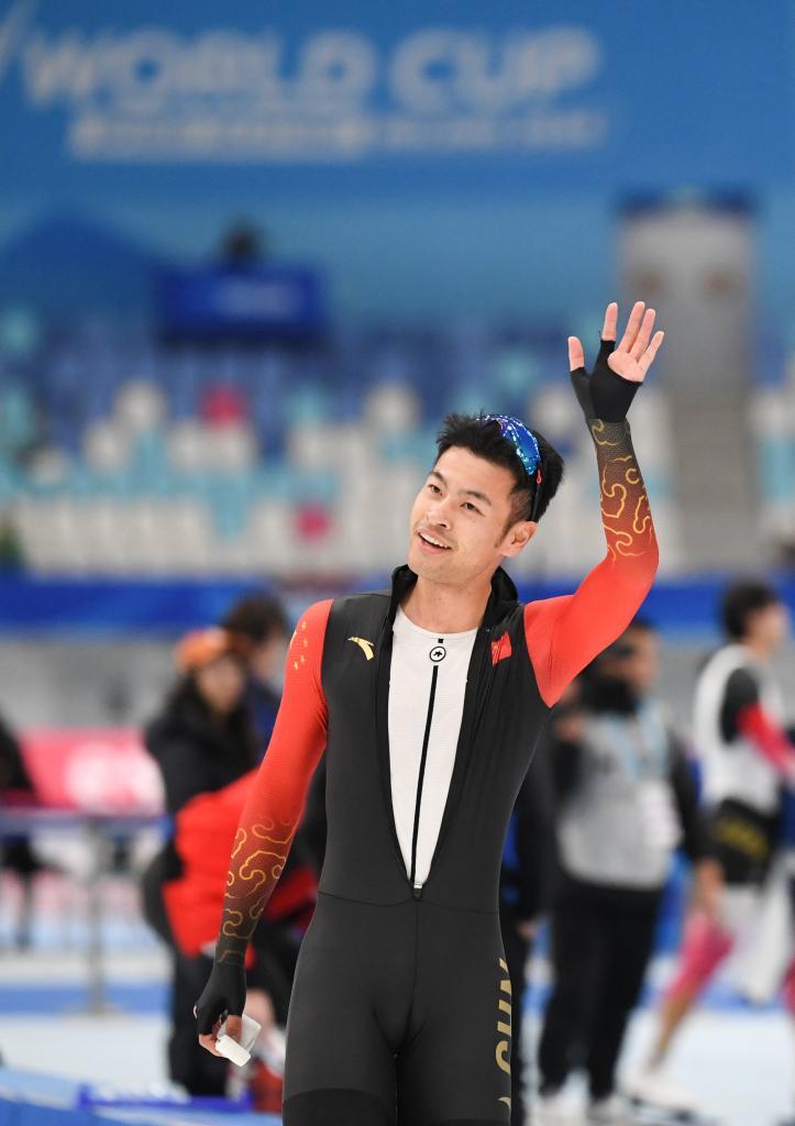 11月30日,中國選手寧忠巖在比賽后向觀眾致意,他以1分07秒91的成績獲得銅牌。新華社記者 鞠煥宗 攝
