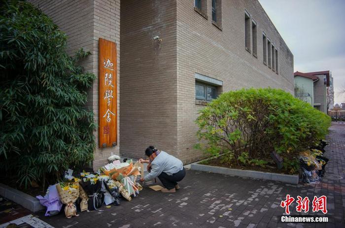 資料圖:11月25日,天津南開大學,師生自發前來將一束束鮮花擺放在迦陵學舍門前,送別葉嘉瑩先生。中新社記者 佟郁 攝