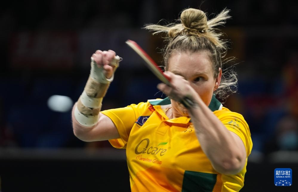 12月1日,澳大利亞隊選手梅麗莎·泰普在女單比賽中回球。最終她0比3不敵中國隊選手王曼昱。