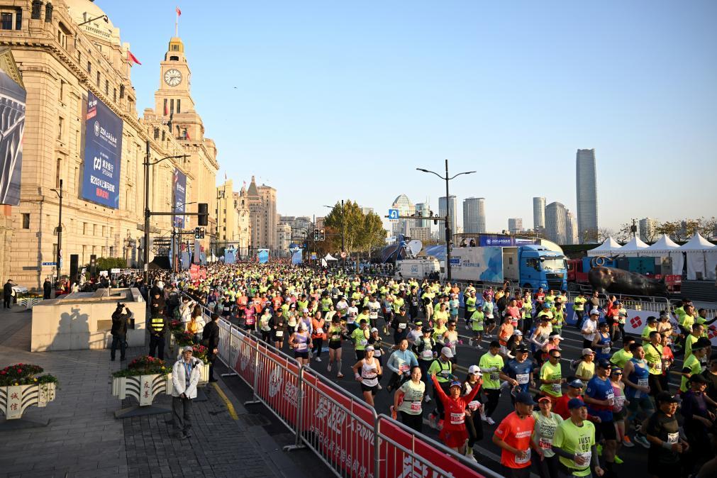 12月1日,參賽選手在2024上海馬拉松比賽中。新華社發(陳浩明攝)