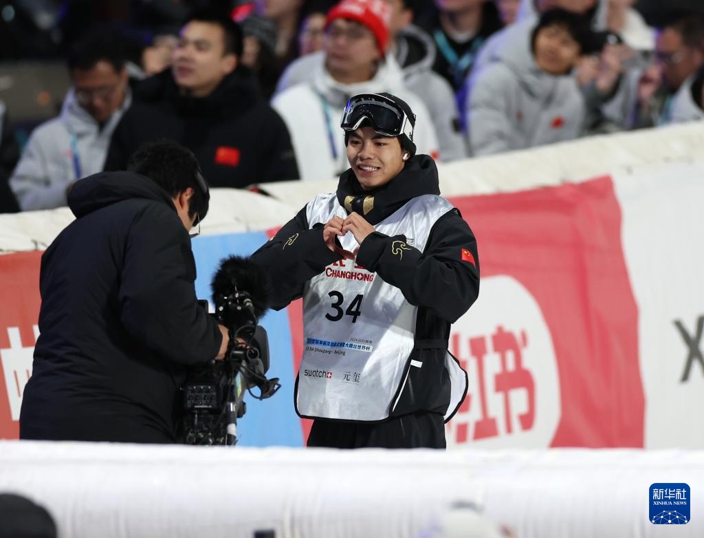 12月1日,中國(guó)選手蘇翊鳴在第二跳后向觀眾致意。最終他獲得第十名。