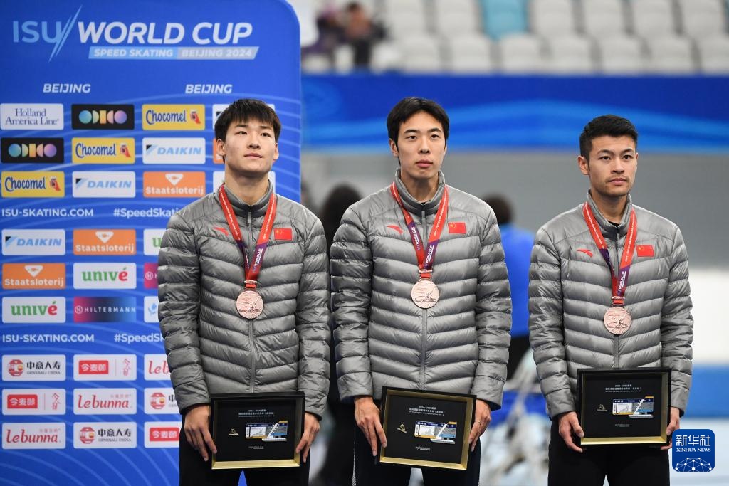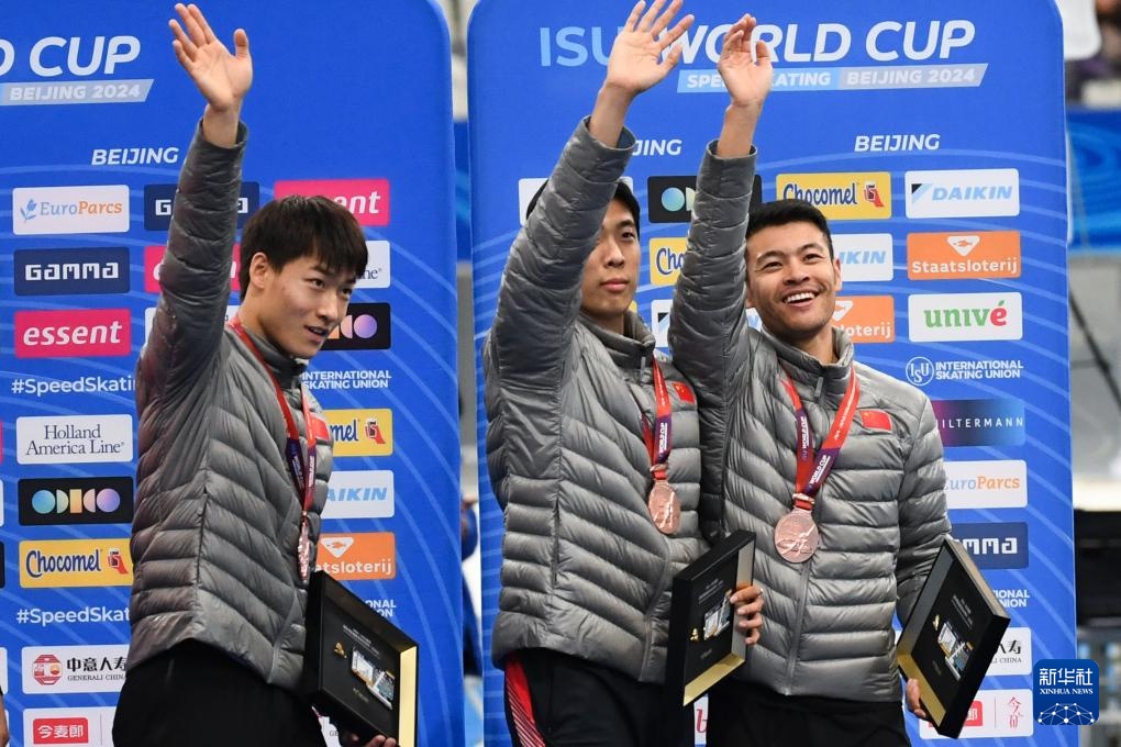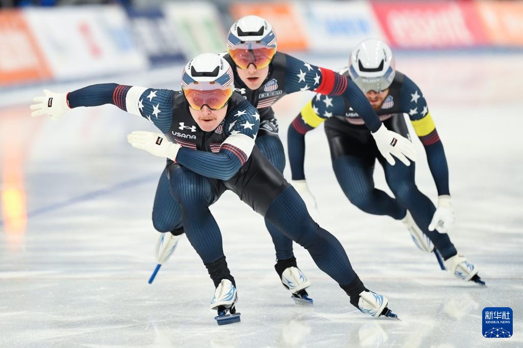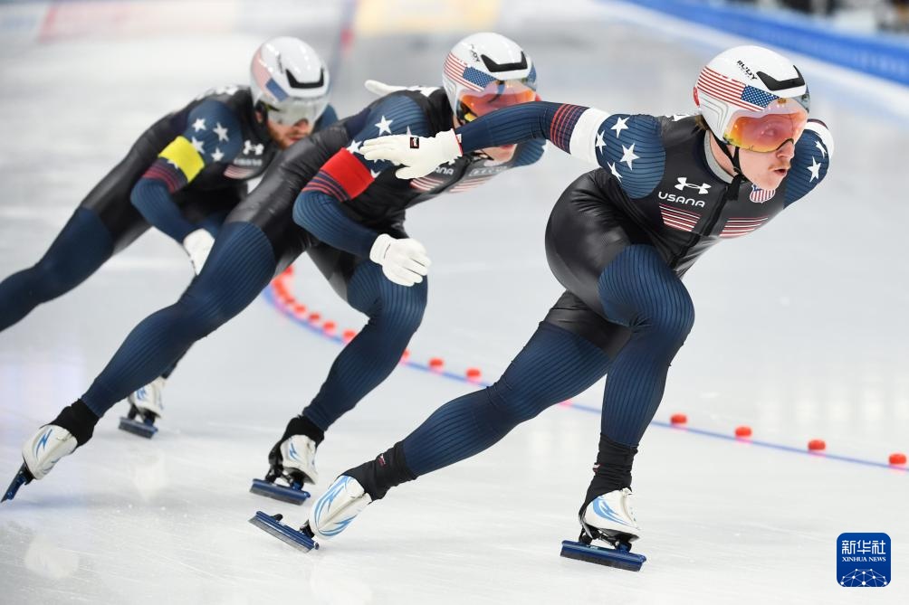 當(dāng)日,國際滑聯(lián)速度滑冰世界杯北京站男子短距離團(tuán)體追逐比賽在北京舉行。