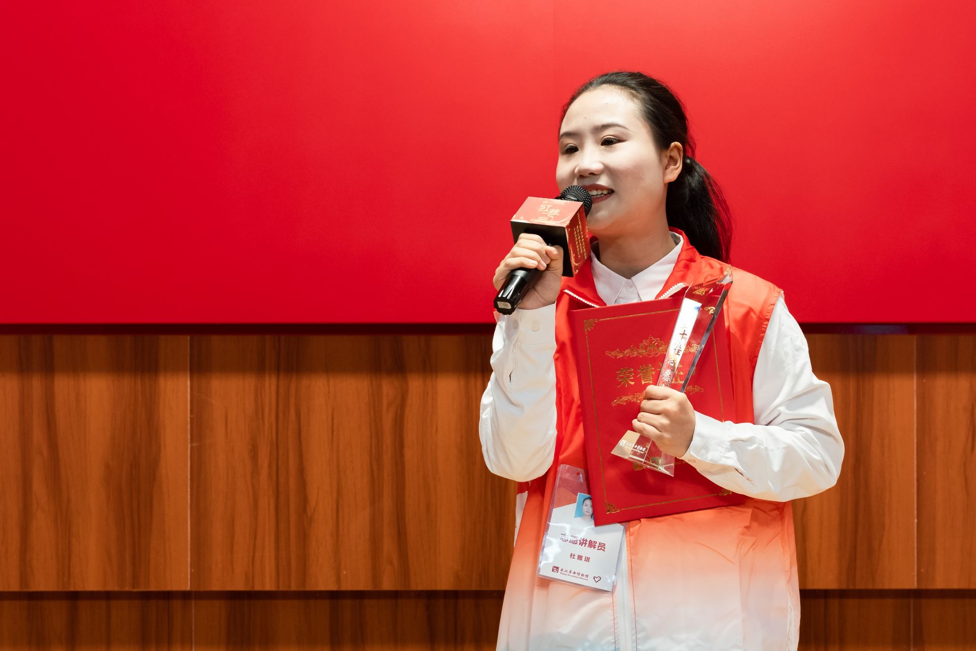 “紅巷青馬”杜雅琪分享了她在志愿服務中的點滴與收獲,講到動情處不禁淚灑現場,她說:“在武漢革命博物館體驗了很多的第一次,第一次走上講臺為“紅巷苗苗”們講課,第一次參加重要接待,第一次培訓新進是志愿者,第一次講臨展,第一次在舞臺上表演…… 我記性很差經常忘記吃過的苦,但我永遠不會忘記我在武漢革命博物館的每一個瞬間?!?/p>