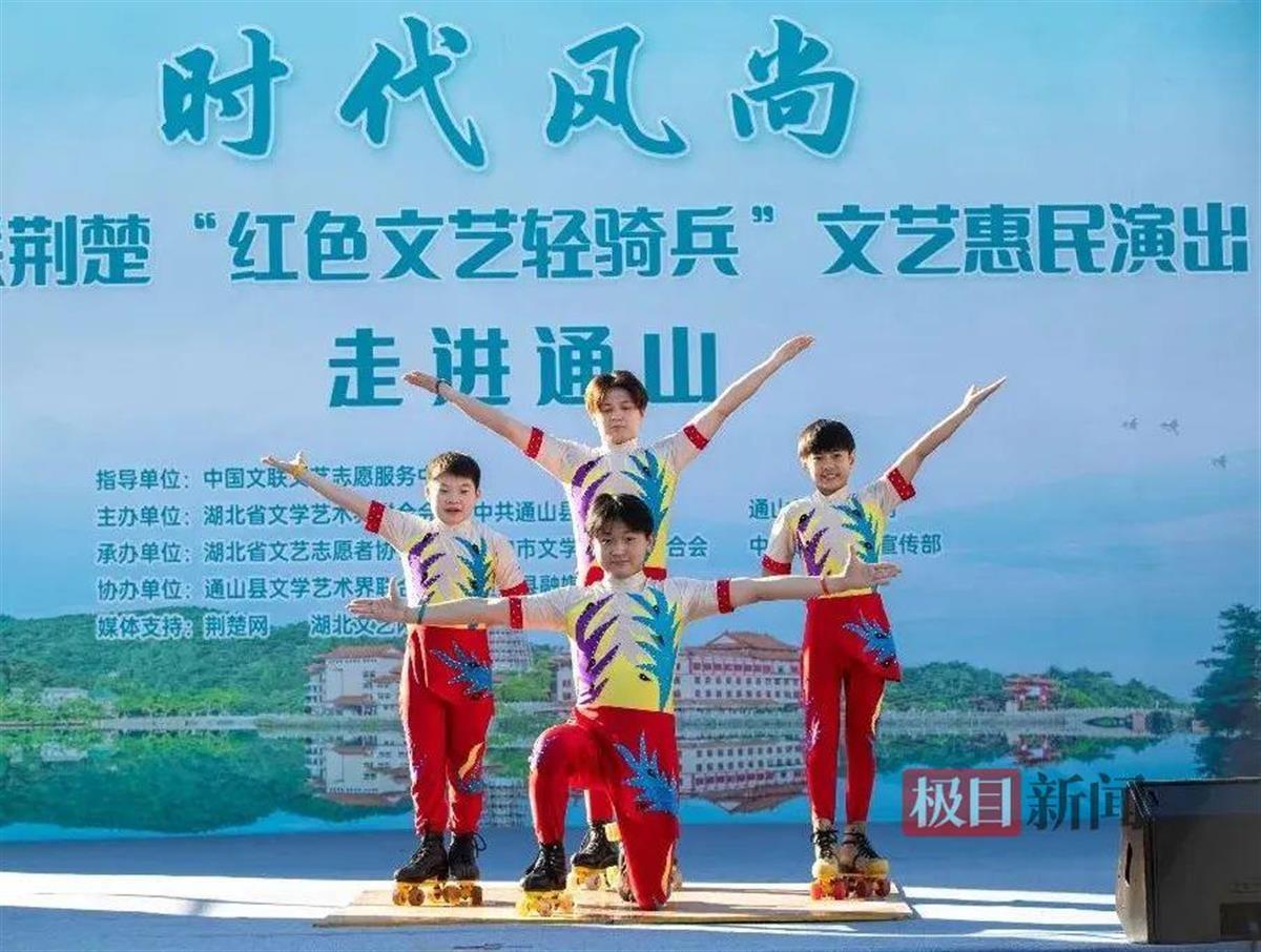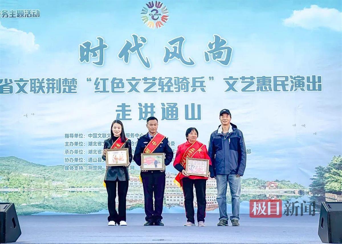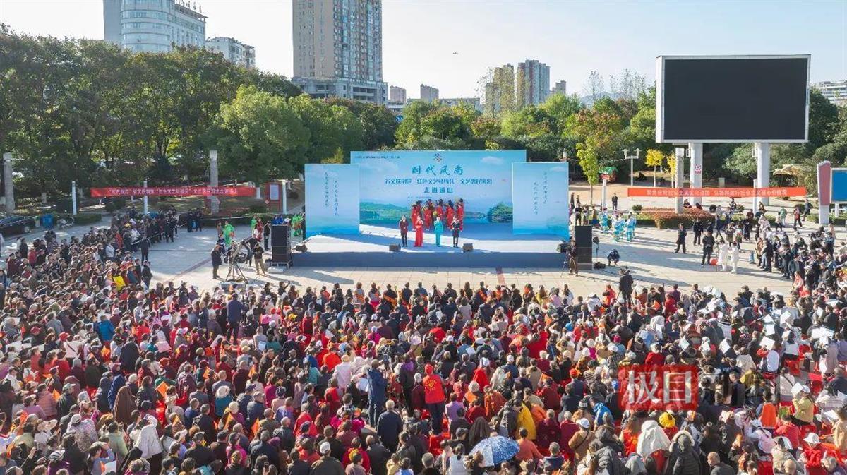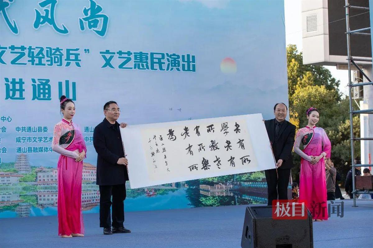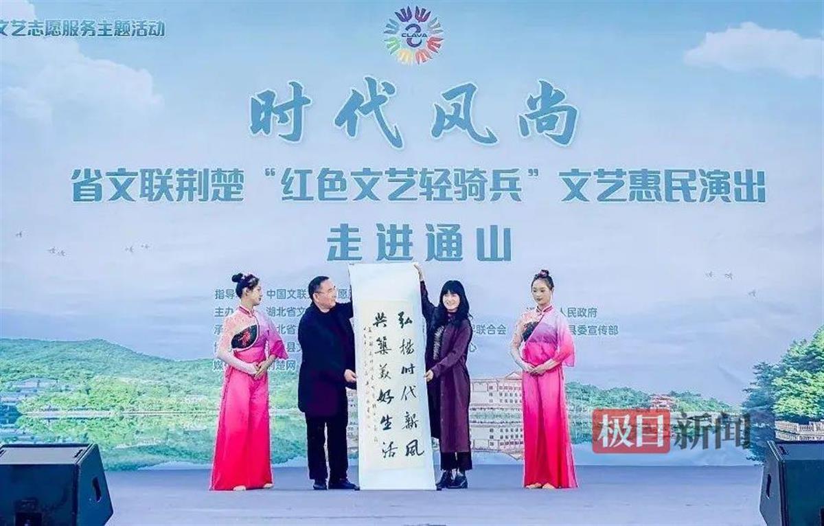 11月29日,“時代風尚”省文聯(lián)荊楚“紅色文藝輕騎兵”文藝惠民演出在通山縣人民廣場順利開展。湖北省文聯(lián)黨組書記、常務(wù)副主席張士軍,湖北省文聯(lián)黨組成員、副主席王永平,咸寧市政協(xié)副主席、市文聯(lián)主席劉智毅,咸寧市文聯(lián)黨組書記楊志文,通山縣委副書記、縣長吳濤,通山縣委常委、組織部部長、宣傳部部長張曉丹與現(xiàn)場3000余名觀眾及13.9萬名網(wǎng)友共享這場文化盛宴。