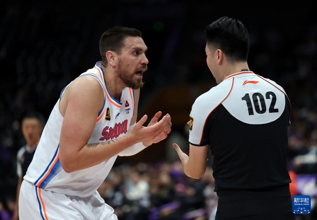12月3日,四川豐谷酒業(yè)隊(duì)球員馬里奇(左)與裁判溝通。