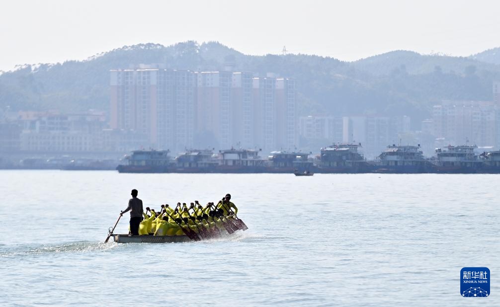 連日來,廣西梧州市藤縣龍舟隊在西江廣西藤縣段開展訓練和測試,備戰即將在廣東省佛山市舉行的2024中國龍舟大獎賽。