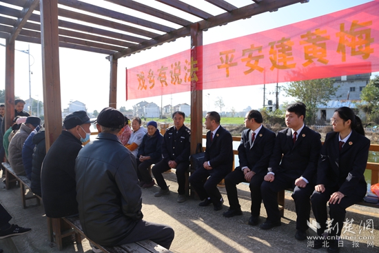 在當地村民欣賞戲曲表演的間歇,檢察干警向村民詳細介紹了檢察機關的主要職能和平安建設知識,現場發放宣傳手冊和《平安黃梅 攜手共創》一封信,為大家普及防范電信詐騙、掃黑除惡、民法典等法律知識,讓村民在潛移默化中提升法治意識。