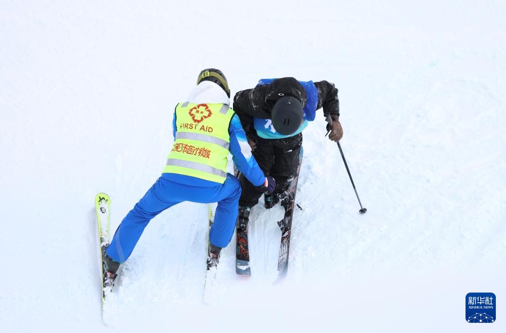 12月5日,一名工作人員幫助摔倒的美國選手特里斯坦·范伯格(右)。最終特里斯坦·范伯格無緣決賽。