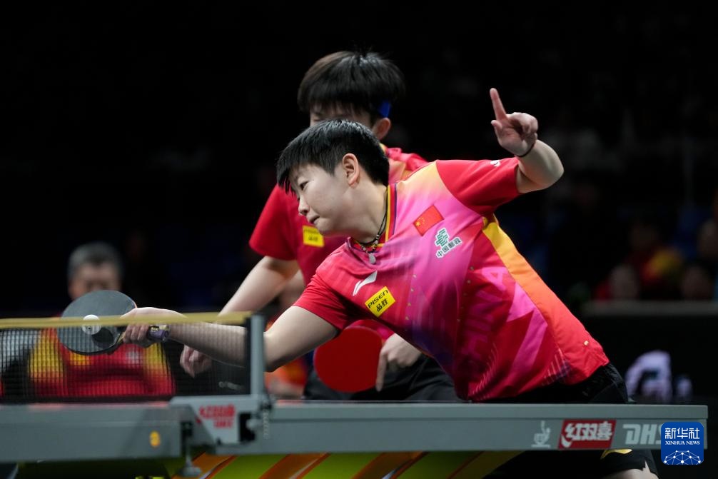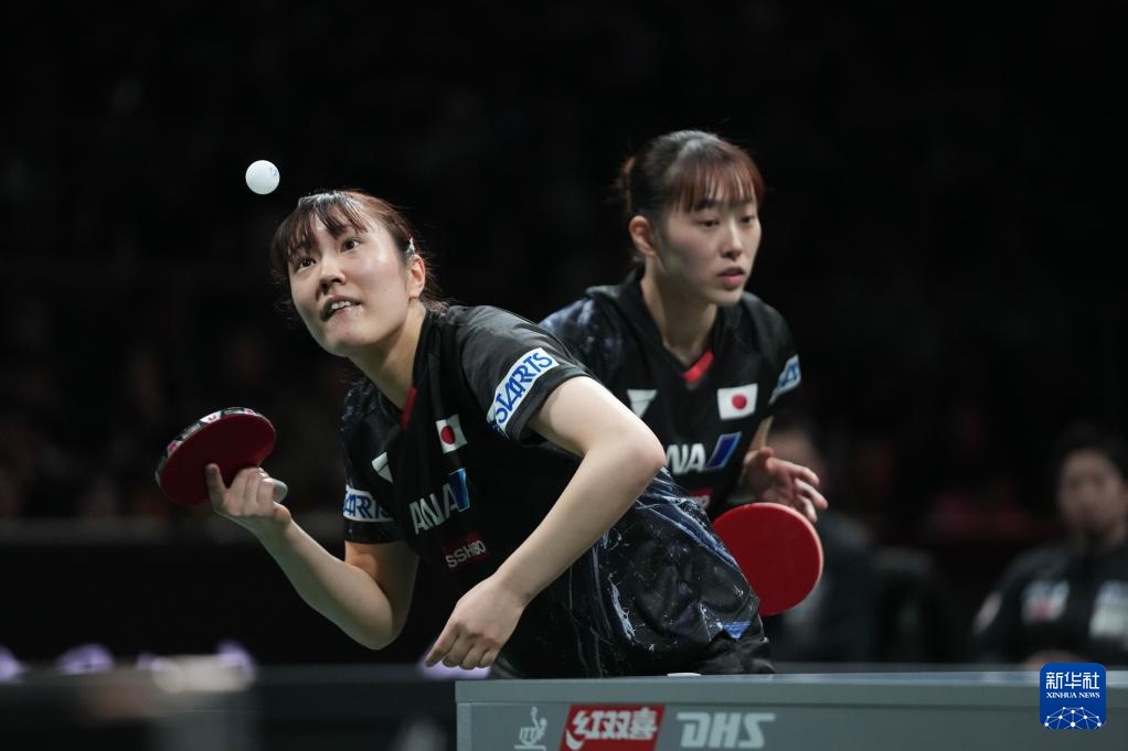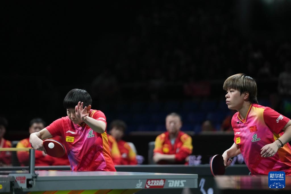 12月6日,中國隊組合王藝迪/孫穎莎(左)在女雙比賽中。最終,她們1比0戰勝日本隊組合笹尾明日香/赤江夏星。