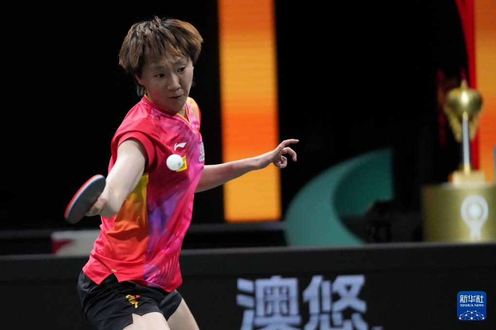 12月6日,中國隊選手王曼昱在女單比賽中回球。最終,她3比0戰勝日本隊選手赤江夏星。