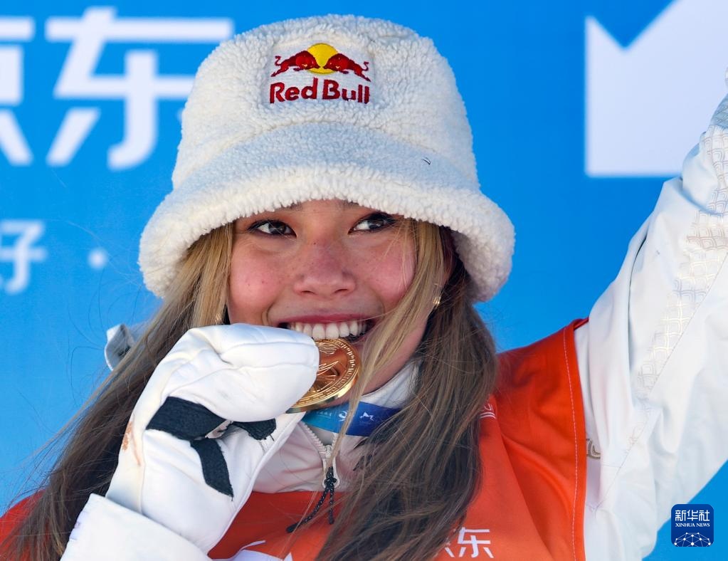 12月7日,冠軍中國選手谷愛凌在頒獎儀式上。