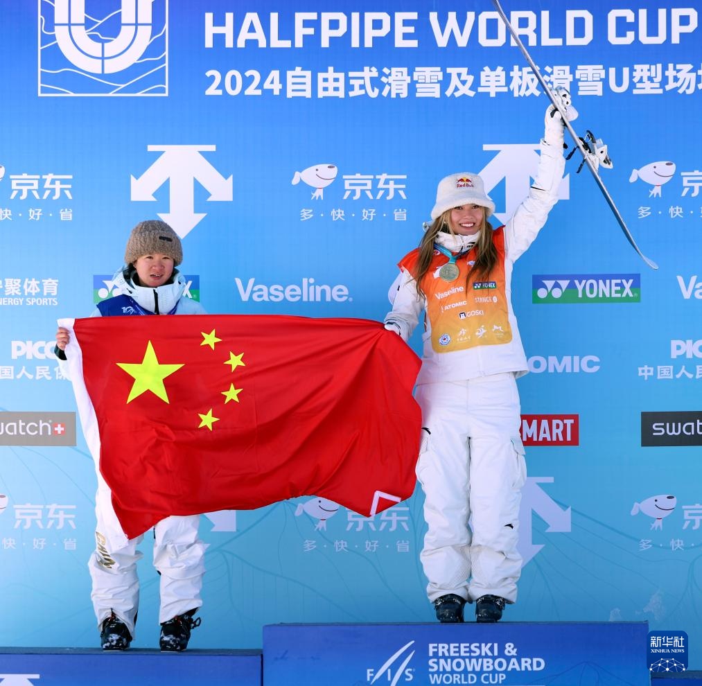 新華社河北崇禮12月7日電(記者楊帆、秦婧)7日,2024-2025賽季國際雪聯單板滑雪和自由式滑雪U型場地技巧世界杯崇禮站繼續進行。中國隊選手谷愛凌、李芳慧包攬自由式滑雪U型場地技巧女子組冠亞軍。