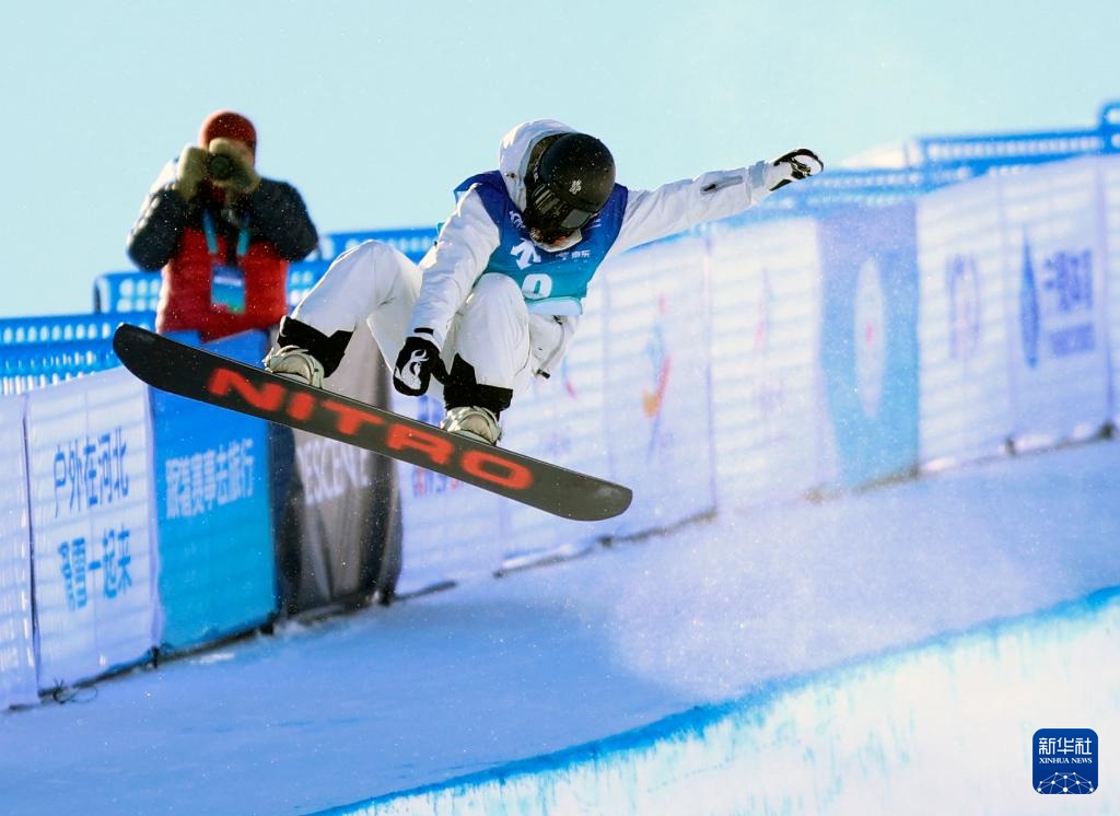 12月8日,中國選手蔡雪桐在比賽中。最終,她獲得亞軍。當日,2024-2025賽季國際雪聯單板滑雪U型場地技巧世界杯崇禮站女子組決賽在河北張家口崇禮云頂滑雪公園舉行。新華社記者 雒圓 攝