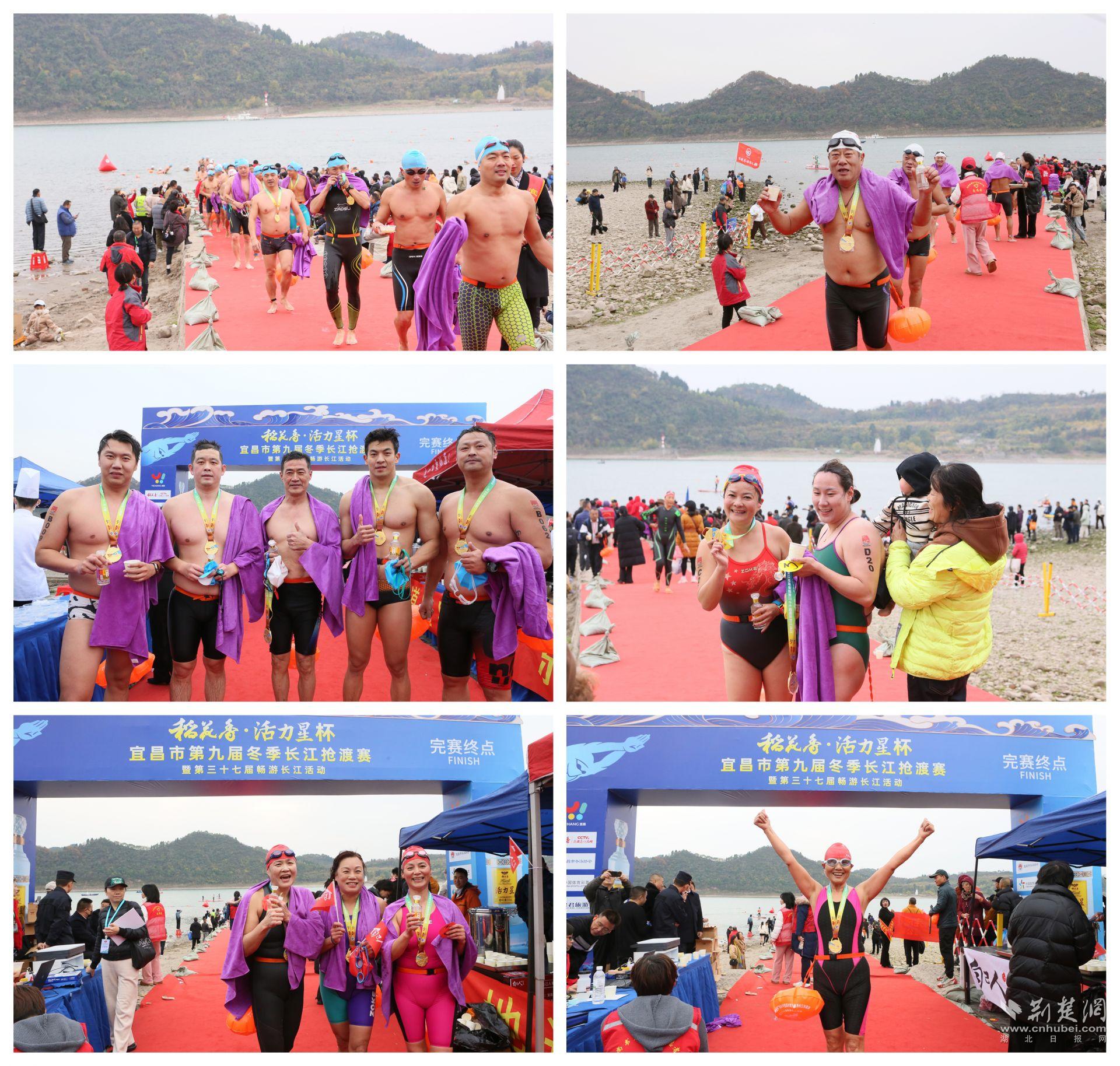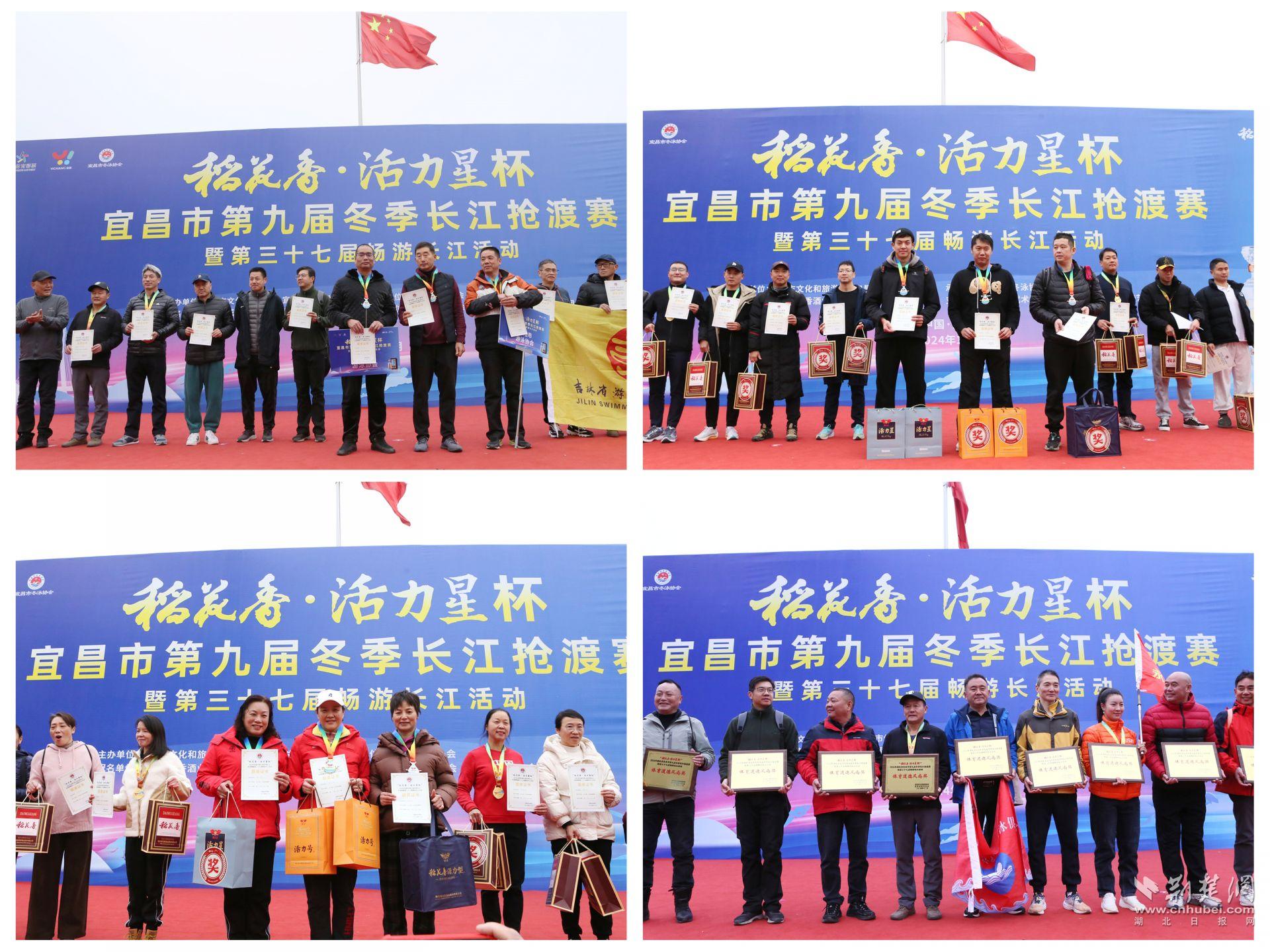 比賽結束后,在雙亭廣場舉行了頒獎儀式。冬季長江搶渡賽評選出各單項賽獲獎者,分別頒發了證書、獎金和獎品;暢游賽的協會(隊)評選出體育道德風尚獎、最佳組織獎和最佳隊形獎,分別頒發了獎牌。