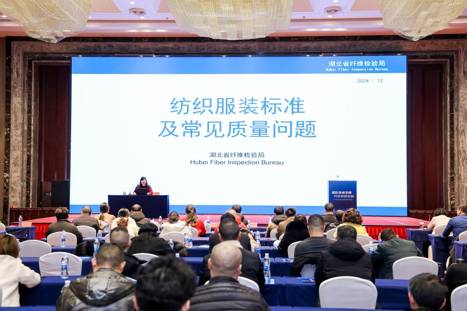 質量大講堂上,圍繞質量管理體系建設并結合湖北企業質量發展需求,中國標準化研究院周芳芳介紹了質量管理的發展歷程、分享了質量管理以及建設的相關知識和經驗。湖北省纖維檢驗局宋雨薇對紡織服裝產品標準及常見質量問題進行專題授課,介紹了紡織服裝產品標準分類,并對紡織服裝標準進行解讀。