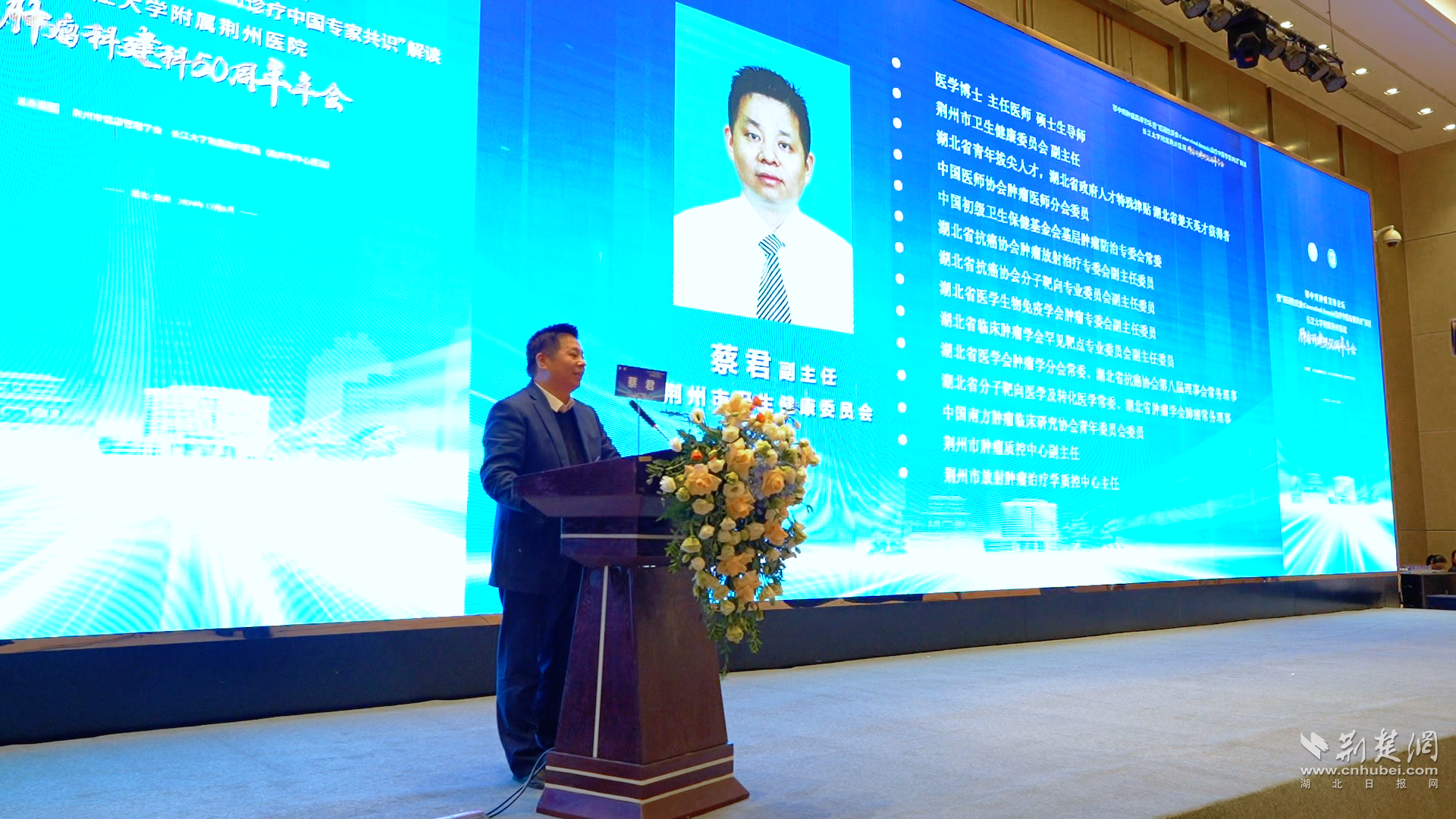 荊州市衛(wèi)健委黨組成員、副主任蔡君在論壇開幕式上致辭,他指出,癌癥是嚴(yán)重影響國民健康的慢性疾病之一,荊州市高度重視腫瘤防治工作,并積極落實相關(guān)政策以提升腫瘤防治水平。他介紹了荊州市在腫瘤防治方面取得的進(jìn)展,包括建立醫(yī)防融合體系和推動健康城市行動。蔡君向全市醫(yī)療機(jī)構(gòu)及醫(yī)務(wù)工作者提出了三點要求:一是完善診療體系、中西結(jié)合,以構(gòu)建綜合癌癥防治模式;二是堅持人才培養(yǎng)、創(chuàng)新驅(qū)動,加強(qiáng)癌癥防治領(lǐng)域科技攻關(guān);三是強(qiáng)化學(xué)習(xí)效果、融會貫通,以提升臨床診療水平。他還強(qiáng)調(diào),癌癥防治需要政府和社會各界共同努力,以形成全周期防控癌癥的社會氛圍,為健康荊州、健康湖北、健康中國作出更大貢獻(xiàn)。