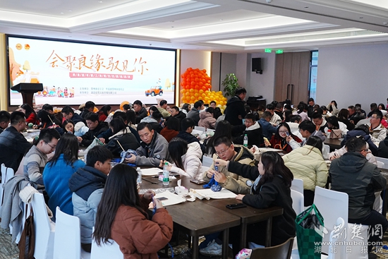 活動的高潮莫過于“心動瞬間”環節,單身青年們男女兩兩搭配,完成手工DIY。在眾人的鼓勵下,他們勇敢表達心意,與心儀對象互贈禮物、合影留念。