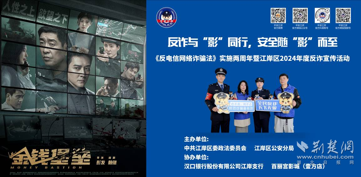 荊楚網(湖北日報網)訊(通訊員 岸公暄)“沒想到今天在電影院有這么大的驚喜,既能看到反詐電影,又能學到反詐知識,這次來得值!”在《中華人民共和國反電信網絡詐騙法》實施兩周年之際,武漢江岸公安走進影城開啟了一場反詐電影與反詐宣傳的跨界合作,現場群眾紛紛點贊這樣的反詐宣傳形式既新穎又實用。