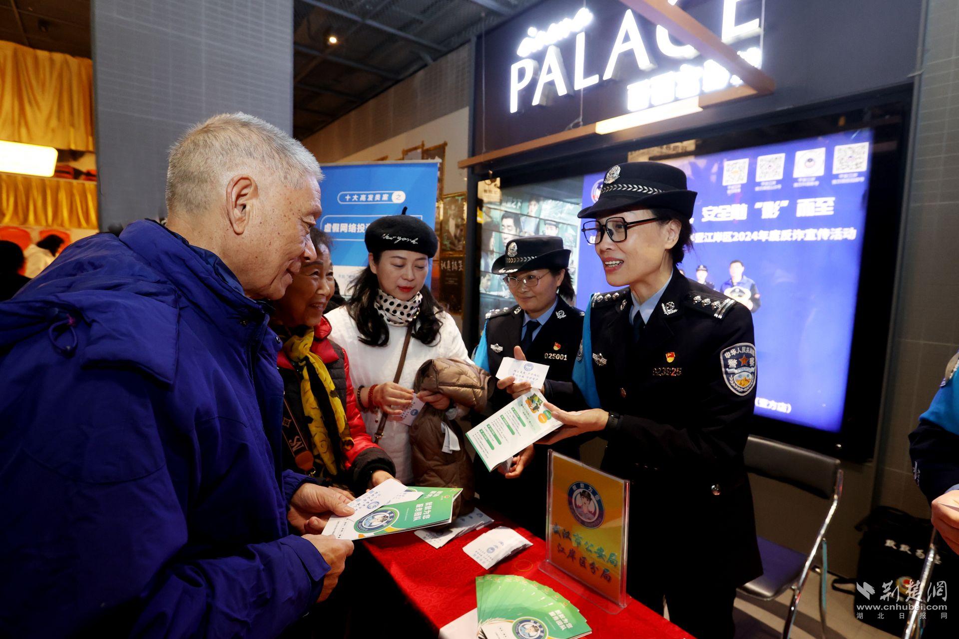 12月10日下午,由中共武漢市江岸區委政法委、武漢市公安局江岸區分局共同主辦,聯合漢口銀行江岸支行、百麗宮影城共同開展《反詐與“影”同行 安全隨“影”而至》2024年度反詐宣傳活動,邀請江岸區老年大學離退休人員和社區群干代表共300余人參與活動。