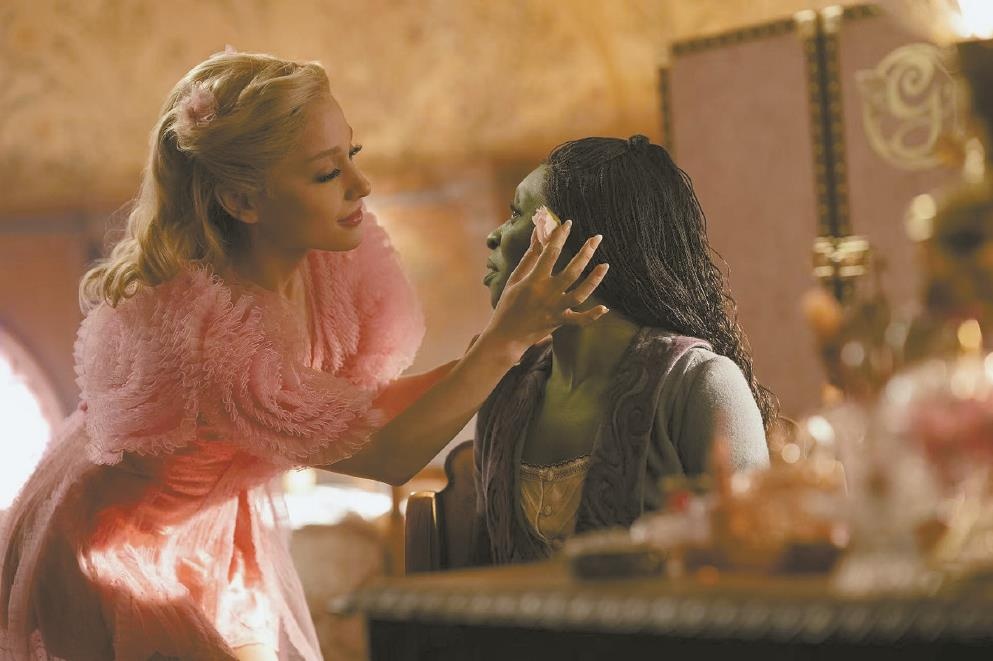 與百老匯啟用職業音樂劇演員不同,好萊塢更傾向于明星加盟。該片試圖去搞定某種平衡。主演綠皮膚女孩艾芙芭的黑人演員辛西婭·埃里沃本就是優秀的百老匯音樂劇明星,她2016年就曾因《紫色》斬獲過托尼獎最佳女主的頭銜,出道不久即巔峰;而金發女郎格琳達的扮演者愛莉安娜·格蘭德2008年就曾在百老匯嶄露頭角,后轉型為頂流歌手。