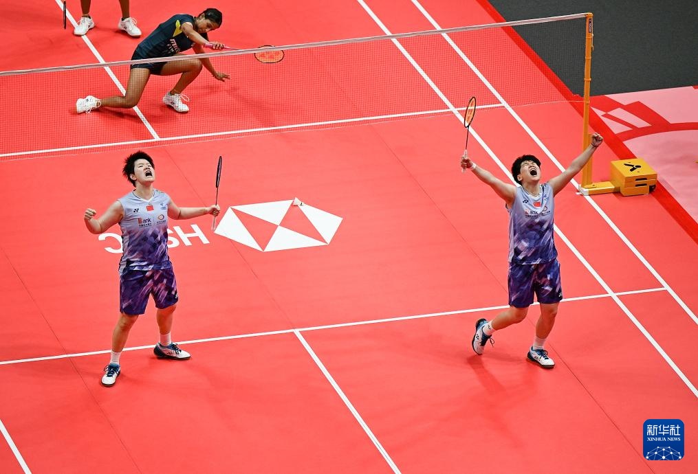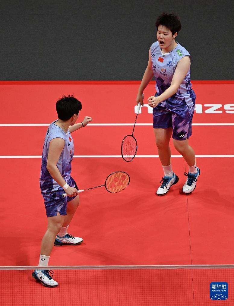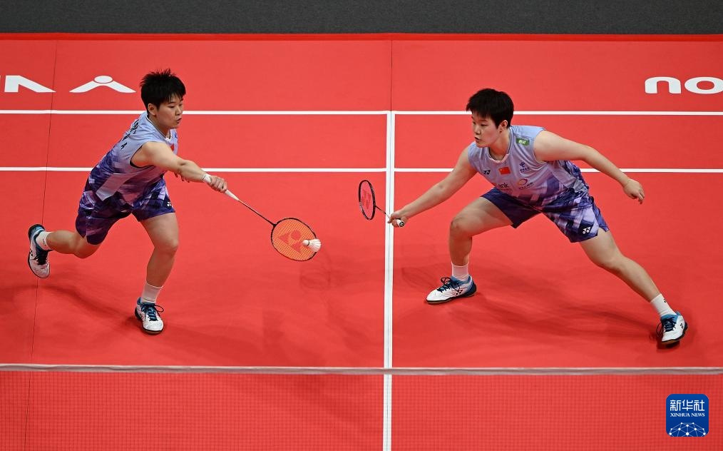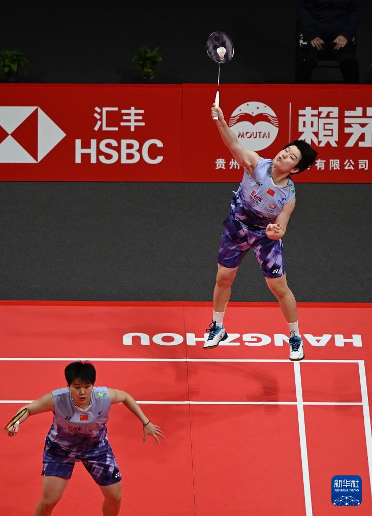 當(dāng)日,在杭州舉行的2024世界羽聯(lián)世界巡回賽總決賽女雙小組賽A組比賽中,中國組合劉圣書/譚寧2比1戰(zhàn)勝印度組合喬莉/普萊拉。