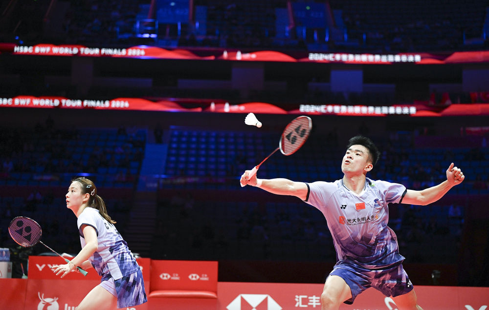 新華社杭州12月11日電(記者田光雨、夏亮)2024年世界羽聯世界巡回賽總決賽11日在杭州奧體中心體育館展開小組賽首輪爭奪。國羽兩對金牌組合巴黎奧運會后首次亮相國際賽場,混雙奧運冠軍鄭思維/黃雅瓊0:2不敵隊友蔣振邦/魏雅欣,女雙奧運冠軍陳清晨/賈一凡2:0戰勝日本組合巖永鈴/中西貴映。